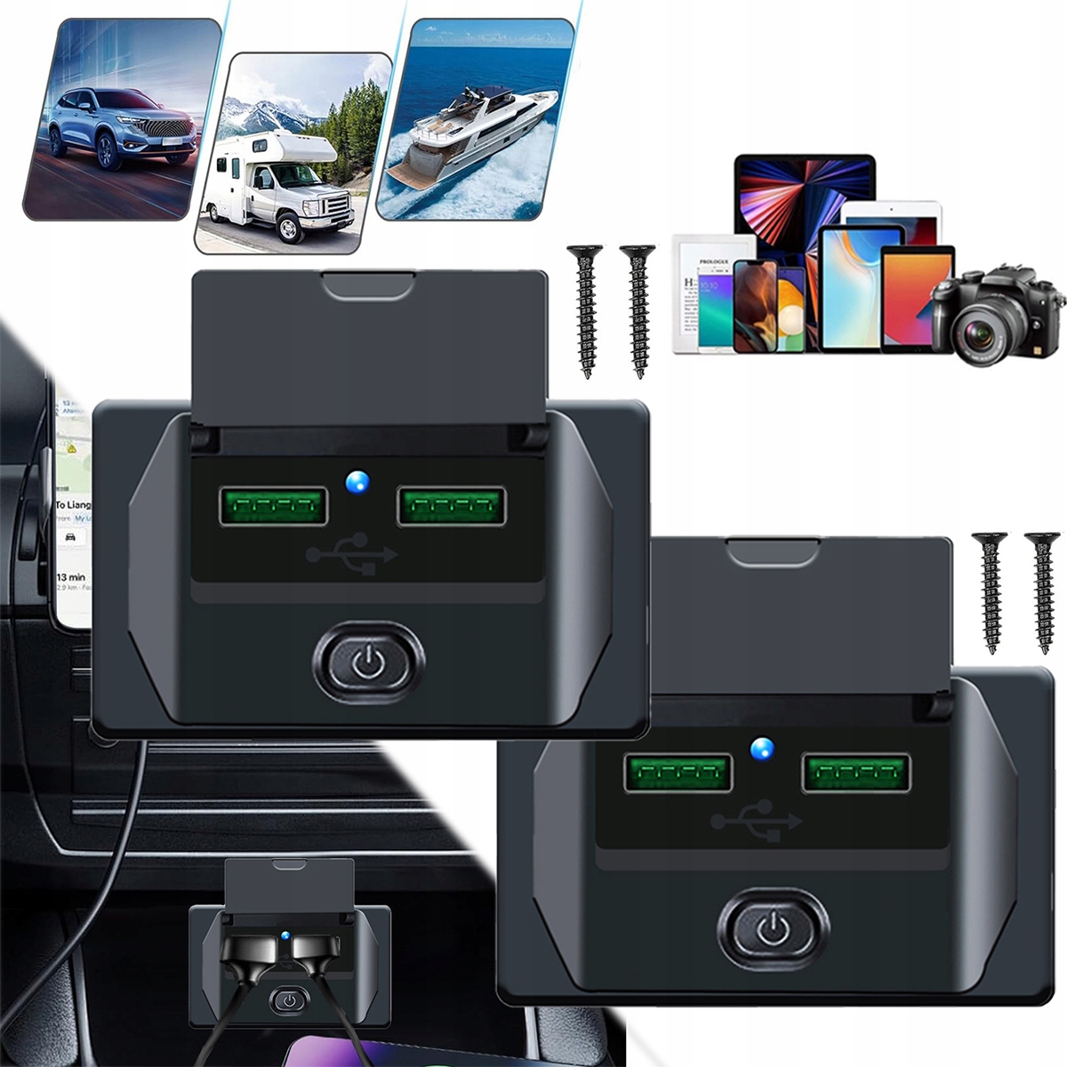 Два USB -силовых розетки идеально подходят для зарядки автомобилей, мотомов, квадроциклов, мотоциклов и лодок с напряжением 12 В -24 против.