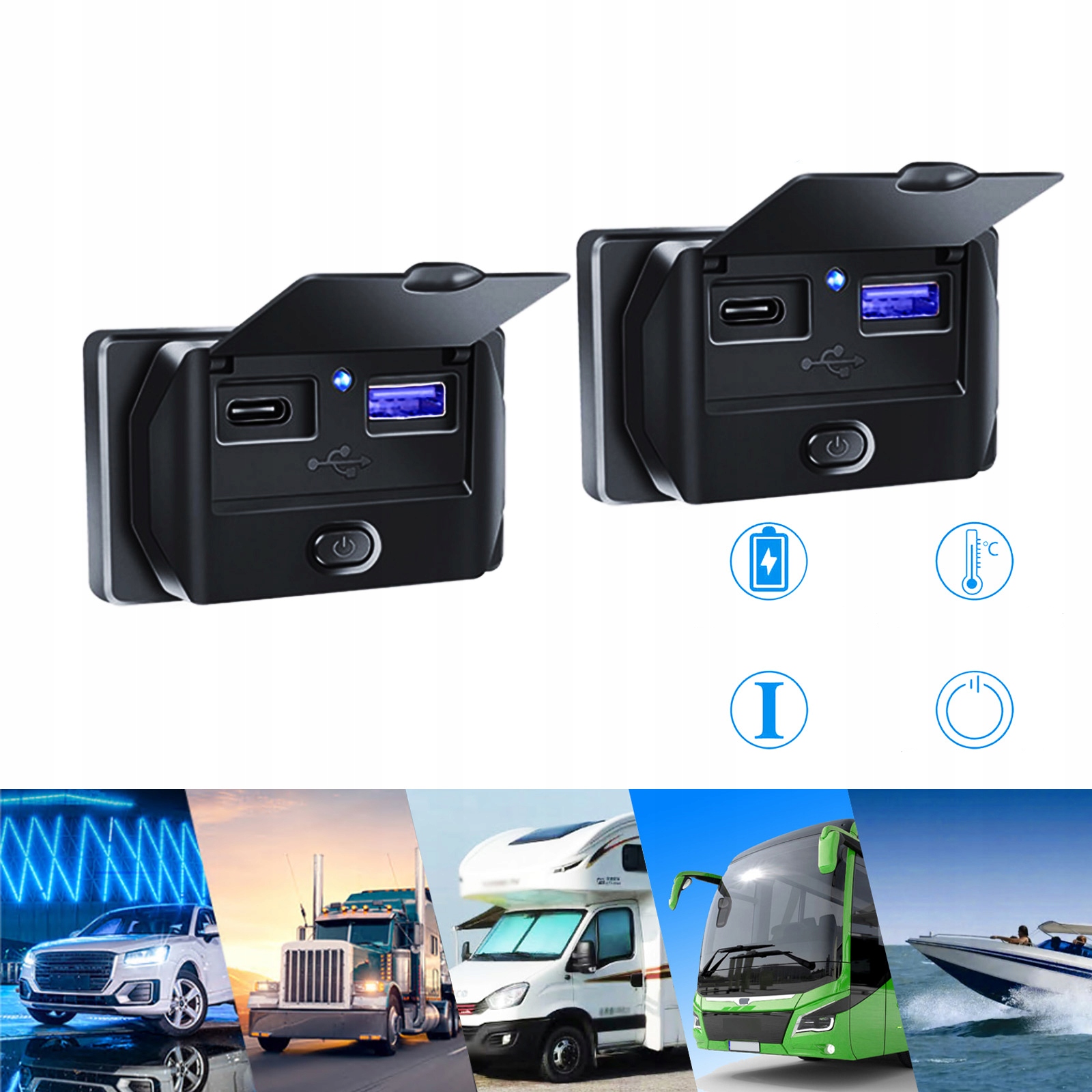 2x два -порт -зарядные сокты QC 3.0 + PD 3.0 с переключателем (черный + синий свет)