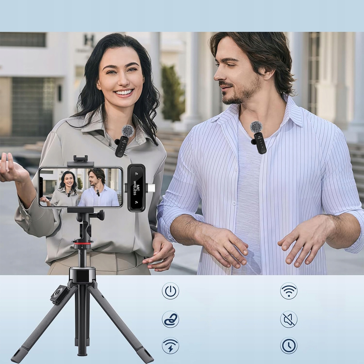 - ✅【Простота в использовании】Драйверы, Bluetooth или приложения не требуются — подключи и работай. Просто прикрепите беспроводной микрофон к спине, подключите приемник к устройству и нажмите кнопку питания. Простой и элегантный дизайн, легкий и компактный.