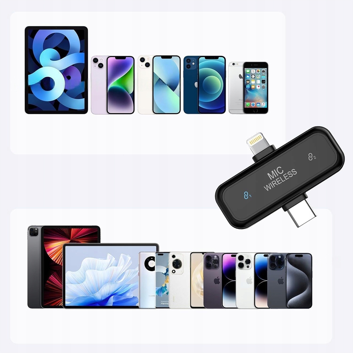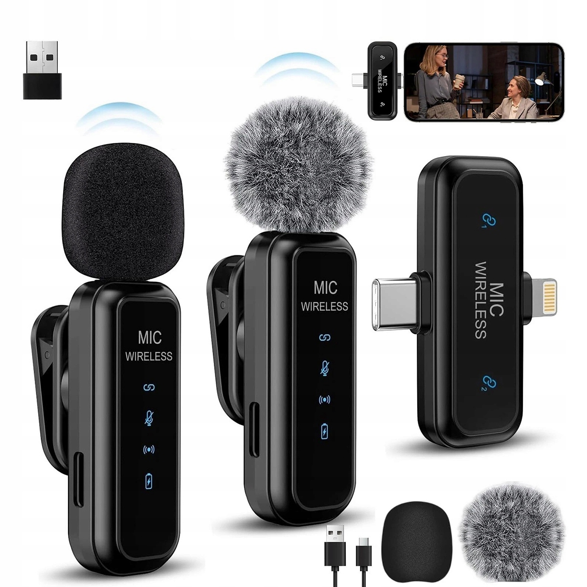 - ✅【Совместимость с большинством устройств】Приемник оснащен интерфейсами Lightning и Type-C, а беспроводной микрофон совместим с iPhone 16, iPhone 16 Plus, iPhone 16 Pro, iPhone 16 Pro Max и другими моделями iPhone, iPad (с разъемом Lightning), а также смартфонами, планшетами с Android и т. д.