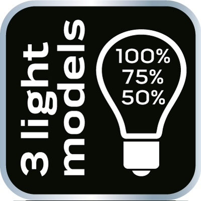 - возможность регулировка силы света (100%, 75%, 50%),