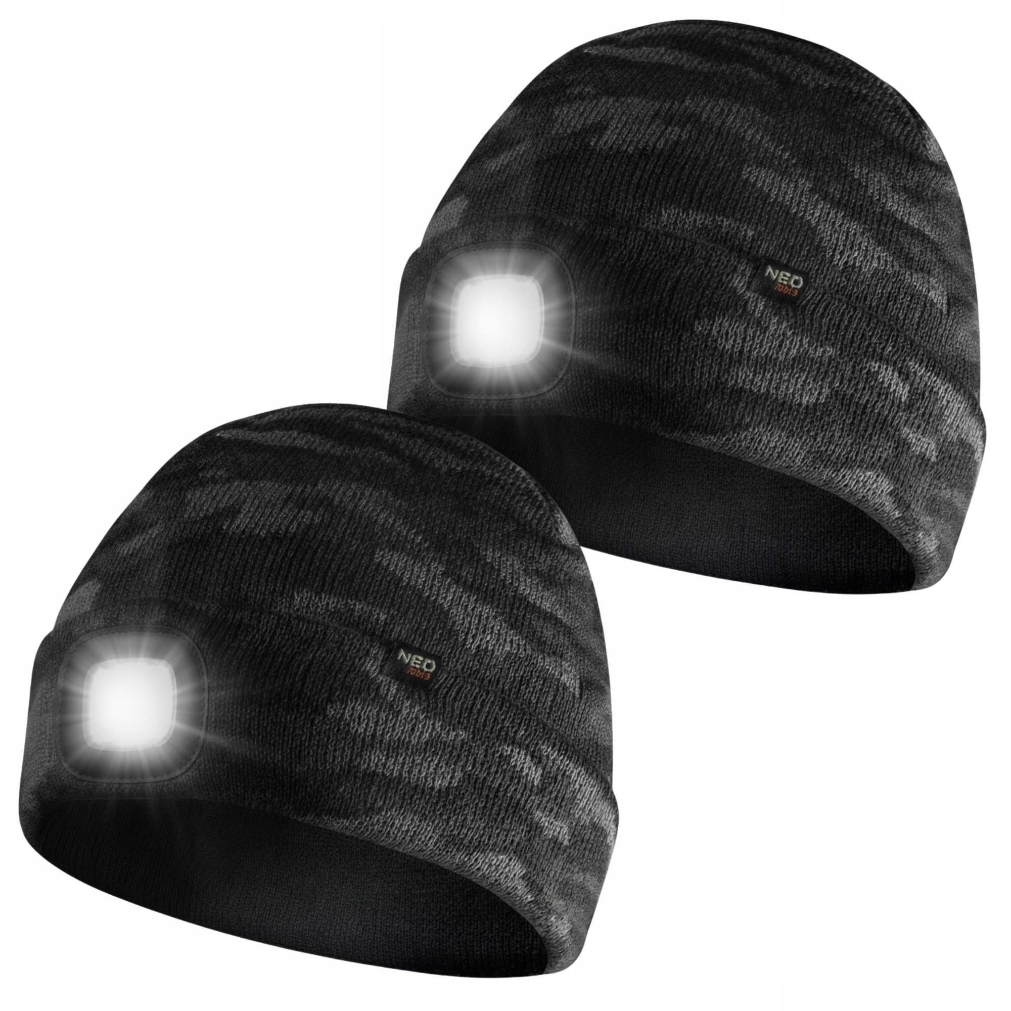 2x УТЕПЛЕНА ЗУБНА ШАПКА З СВІТЛОДІОДНИМ ФРОНТАЛЬНИМ ЛІХТАРИКОМ USB 3 РЕЖИМИ СВІТІННЯ NEO