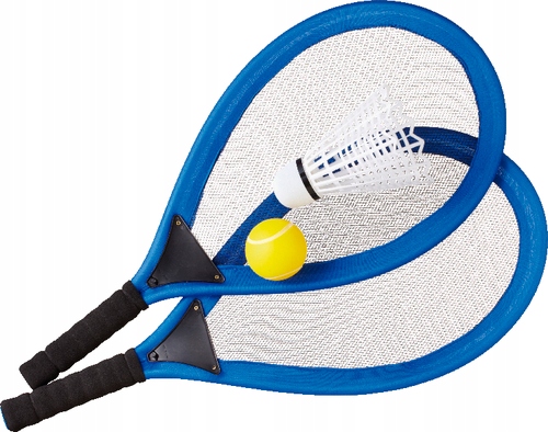 В комплект входят две ракетки с текстильным покрытием и пенопластовыми ручками из высококачественного материала, а также желтый мягкий теннисный мяч и белый гигантский волан длиной 20 см.