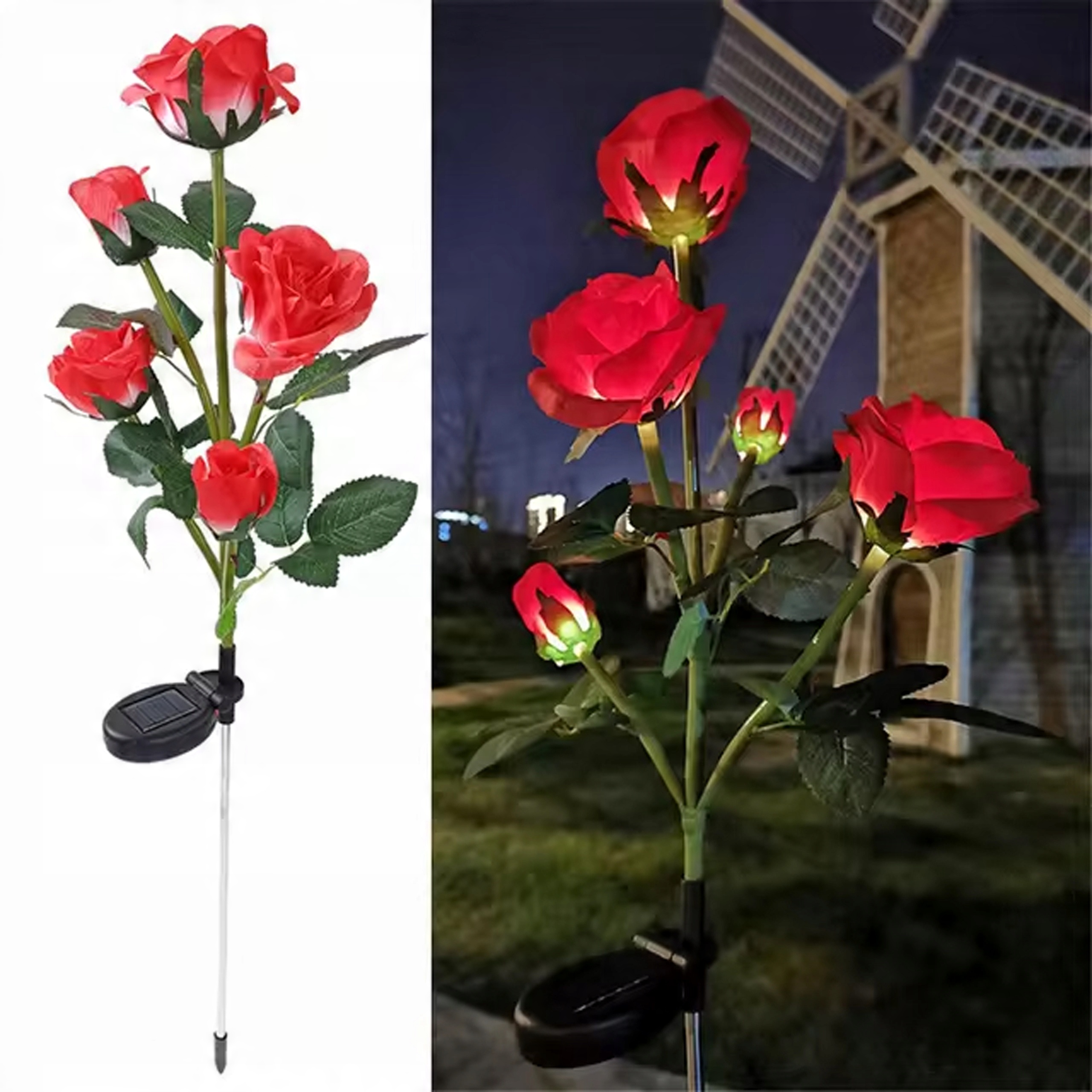 2x ВІДКРИТИЙ САДОВИЙ СВІТИЛЬНИК СОНЯЧНИЙ СВІТЛОДІОДНИЙ ЛАМПА з квіткою ЧЕРВОНІ ТРОЯНДИ