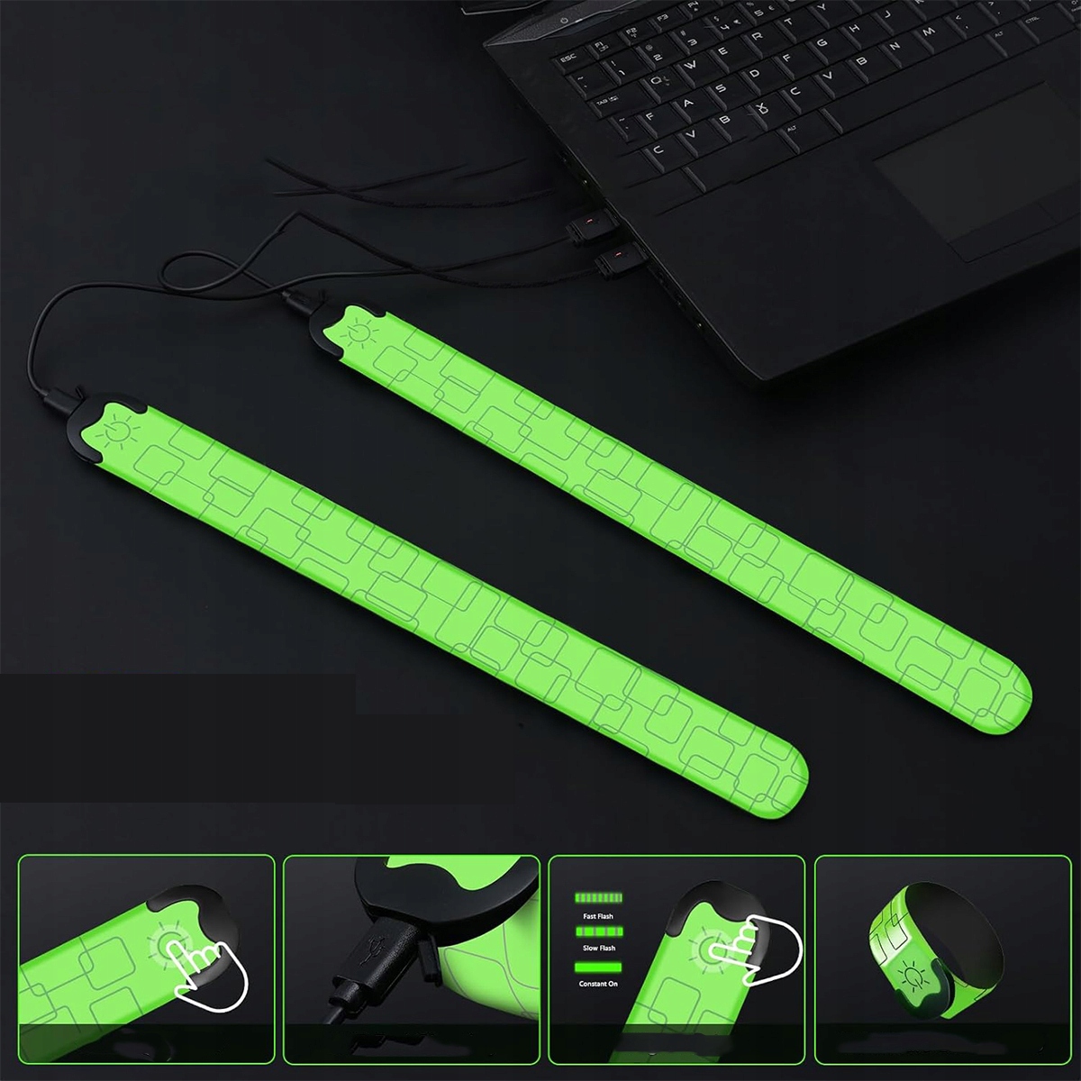 2 светоотражающих светодиодных браслета для бега и езды на велосипеде, водонепроницаемый USB