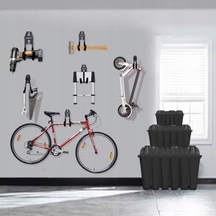 Вешалка предназначена для удобного и безопасного хранения велосипедов! Он имеет широкое и универсальное применение. Вы можете использовать его для хранения различных вещей, лежащих в гараже. Такие как велосипеды, инструменты, кабели, провода, удлинители, садовые шланги, шины, лестницы И многое, многое другое!