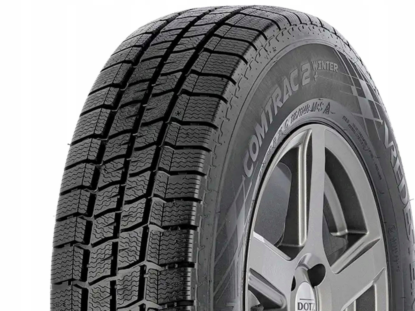 vredestein comtrac 2 Winter+ - это зимняя шина премиум -класса, посвященная фургонам. Шины гарантируют высокий уровень стабильности и контроля над транспортным средством, независимо от условий на дороге. Преимущество этой модели - высокая адгезия на сухих и влажных поверхностях. Сравнивая со своим предшественником Comtrac 2 Winter, в новой версии была оптимизирована смесь протектора. Благодаря этому его долговечность и сила были увеличены. Конструкция также была изменена производителем, используя волокна шнур с более высокой плотностью в зоне истирания. Благодаря этому стабильность во время вождения улучшилась, на прямых и извилистых участках дороги. Как гарантирует Вредестейн, этот эффект поддерживается даже при полной нагрузке автомобиля. Работа этой зимней шины превышает 20%дольше, все благодаря протектору из оптимизированной смеси, содержащей специальное укрепление наполнителя. Модель Comtrac 2 Winter+ была улучшена параметрами вождения и торможения на снегу на 5%. Это позволило использовать симметричный протектор. Плотно расположенные ламеллы и широкие блоки значительно облегчают вождение по снежной и скользкой дороге. В свою очередь, канавки в центральной части шин феноменально сливают избыточную воду с поверхности шины.