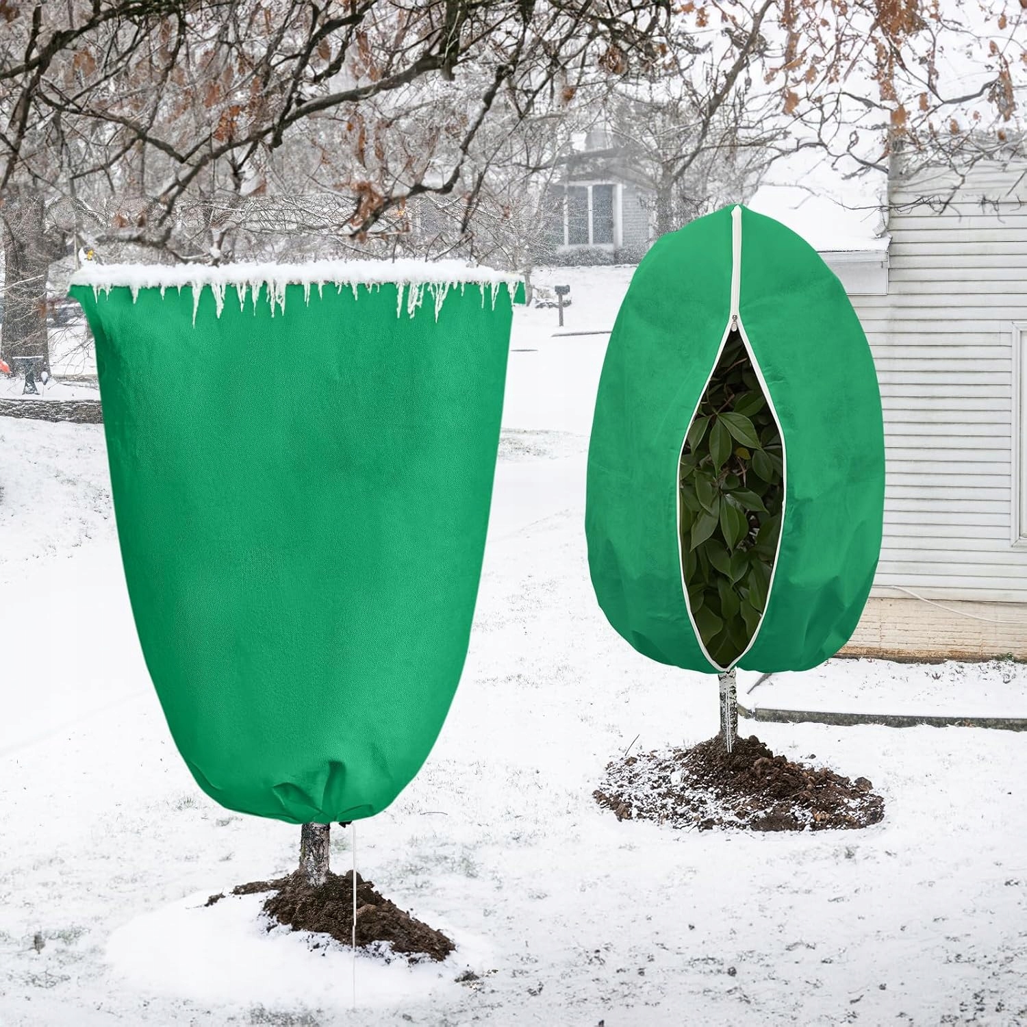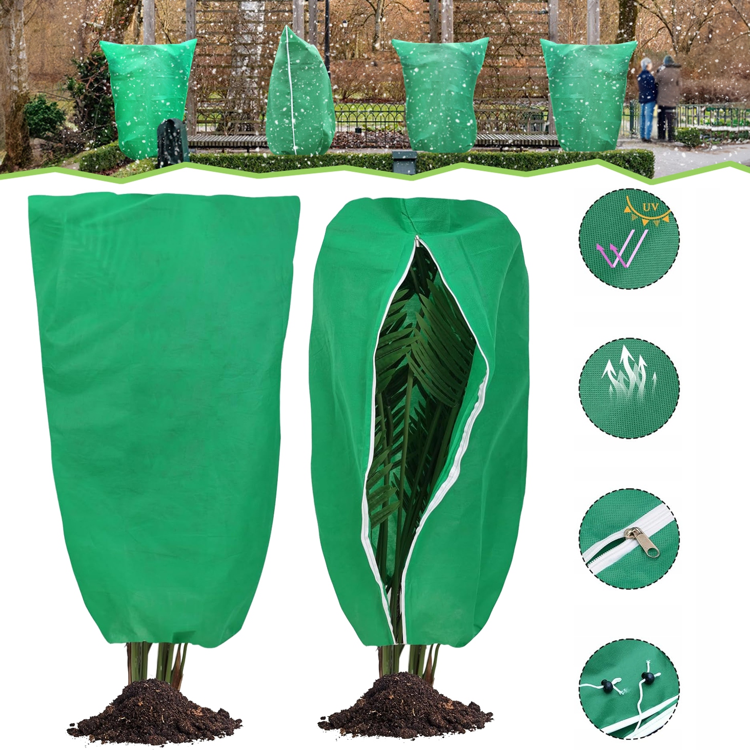 🌲 Зимняя защита от замерзания: Этот зимний чехол для защиты растений изготовлен из улучшенного, более толстого нетканого материала. который защищает нежное растение от сложных условий, таких как снег, град, мороз, сильный ветер. Он также может защитить растение, чтобы избежать потенциальных повреждений, таких как укусы птиц или повреждения животными.