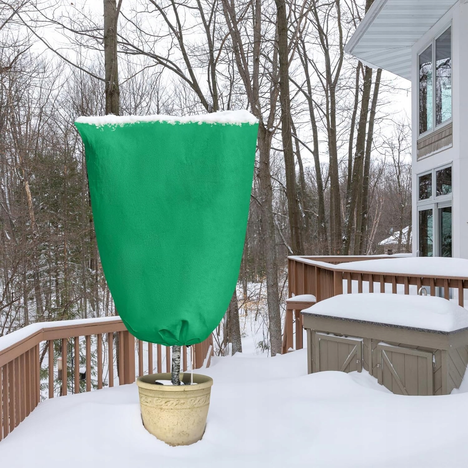 🌲 Зимняя защита от замерзания: Этот зимний защитный чехол для растений изготовлен из улучшенного, более толстого нетканого материала, который защищает нежное растение от суровых условий, таких как снег, град, мороз, сильный ветер. Он также может защитить растение, чтобы избежать потенциальных повреждений, таких как укусы птиц или повреждения животными.