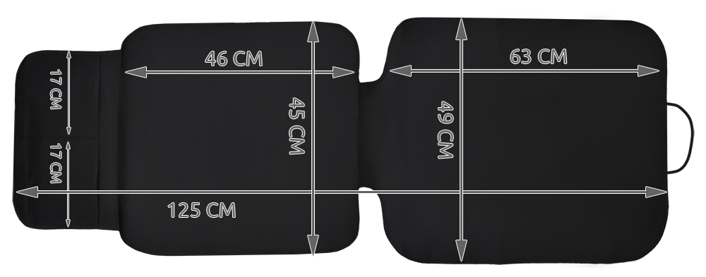 Сиденье дополнительно обложено плотным полиэстером, который является водонепроницаемым слоем. Защитный коврик прост в установке – достаточно разложить его на сиденье и прикрепить к подголовнику с помощью эластичной ленты, пришитой к верхней части спинки. Два кармана, расположенные в нижней части коврика, позволят хранить необходимые вещи.