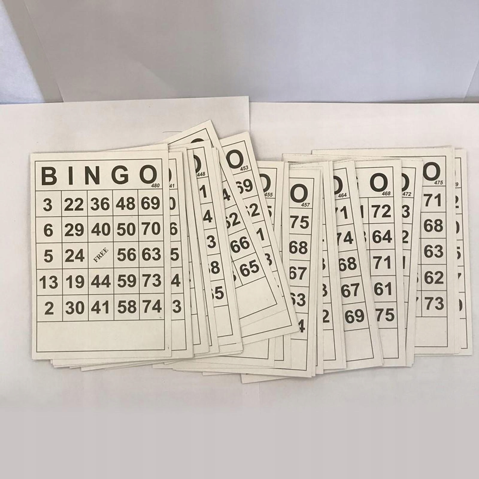 Диапазон номеров этих бумажных карточек бинго составляет 0–75, а номер каждой бумаги — 481–540, поэтому вы можете быстро идентифицировать их во время игры.