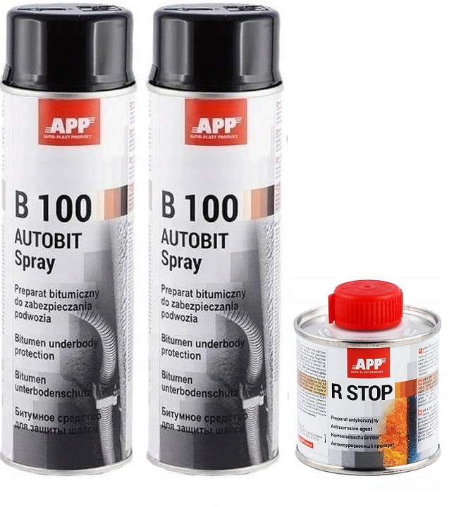APP B100 Autobit Spray — битумная аэрозольная краска с антикоррозионными и звукоизоляционными свойствами для быстрого ремонта, антикоррозионной защиты шасси легковых автомобилей, автобусов, грузовых автомобилей и строительных машин. Создает гибкий, теплоизоляционный слой, защищающий от атмосферных воздействий.