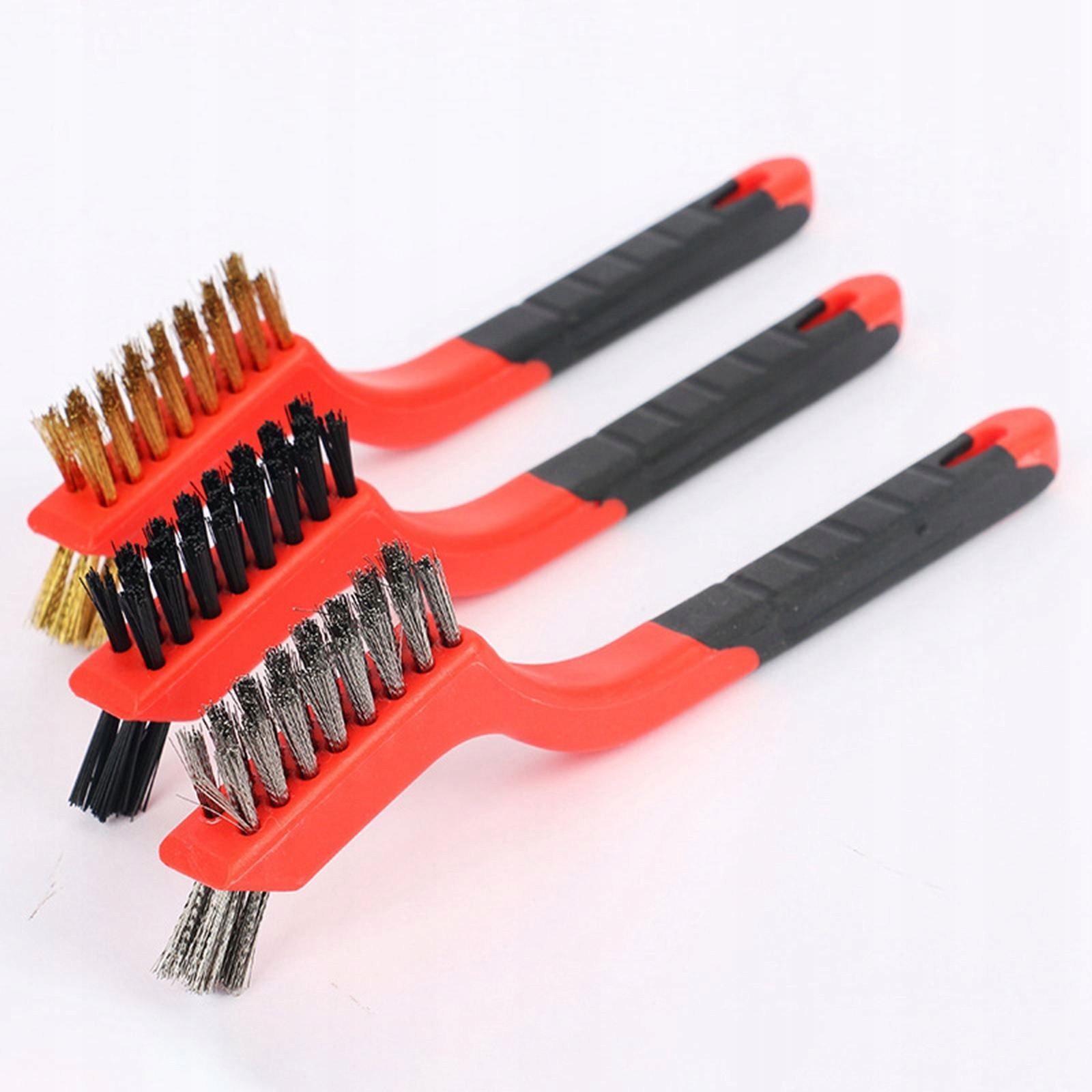 Три различных типа, включая медную проволочную щетку, нейлоновую щетку и кисть из нержавеющей стали. Проволочная щетка из нержавеющей стали можно использовать для удаления ржавчины, нейлоновая щетка очень полезна для точных электрических устройств. Латунные щетки отлично подходят для очистки металлических поверхностей, не рисует их.