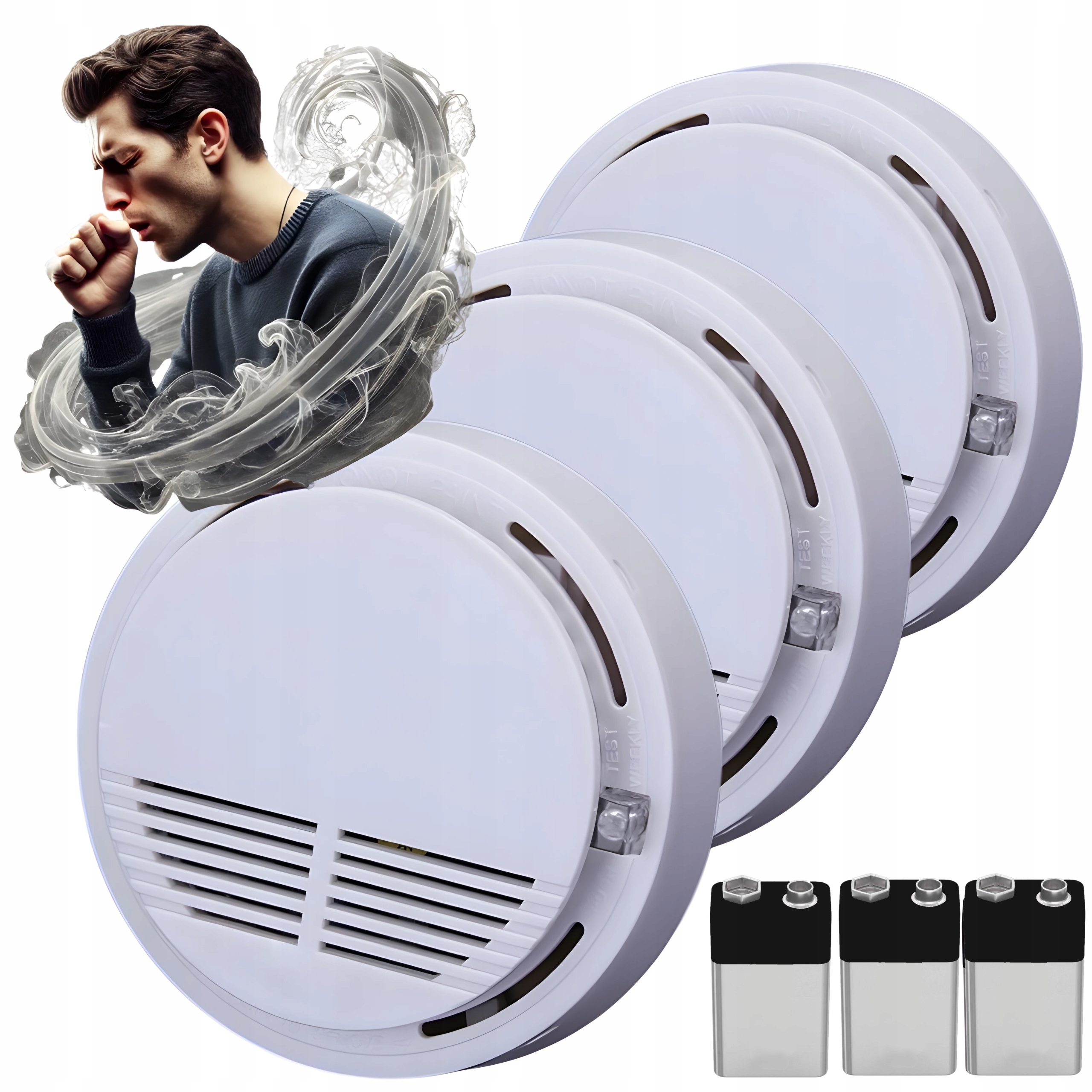 3x беспроводной датчик дыма - фотоэлектрический детектор с сигналом 85 дБ, батарея 9 В, срок службы 10 лет h1>