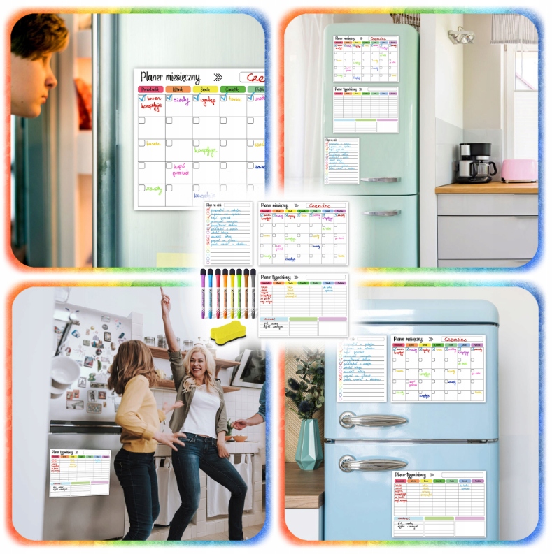 3in1 Планировщик холодильника - ежедневно + еженедельный + месяц | 8 маркеров, включенных в набор