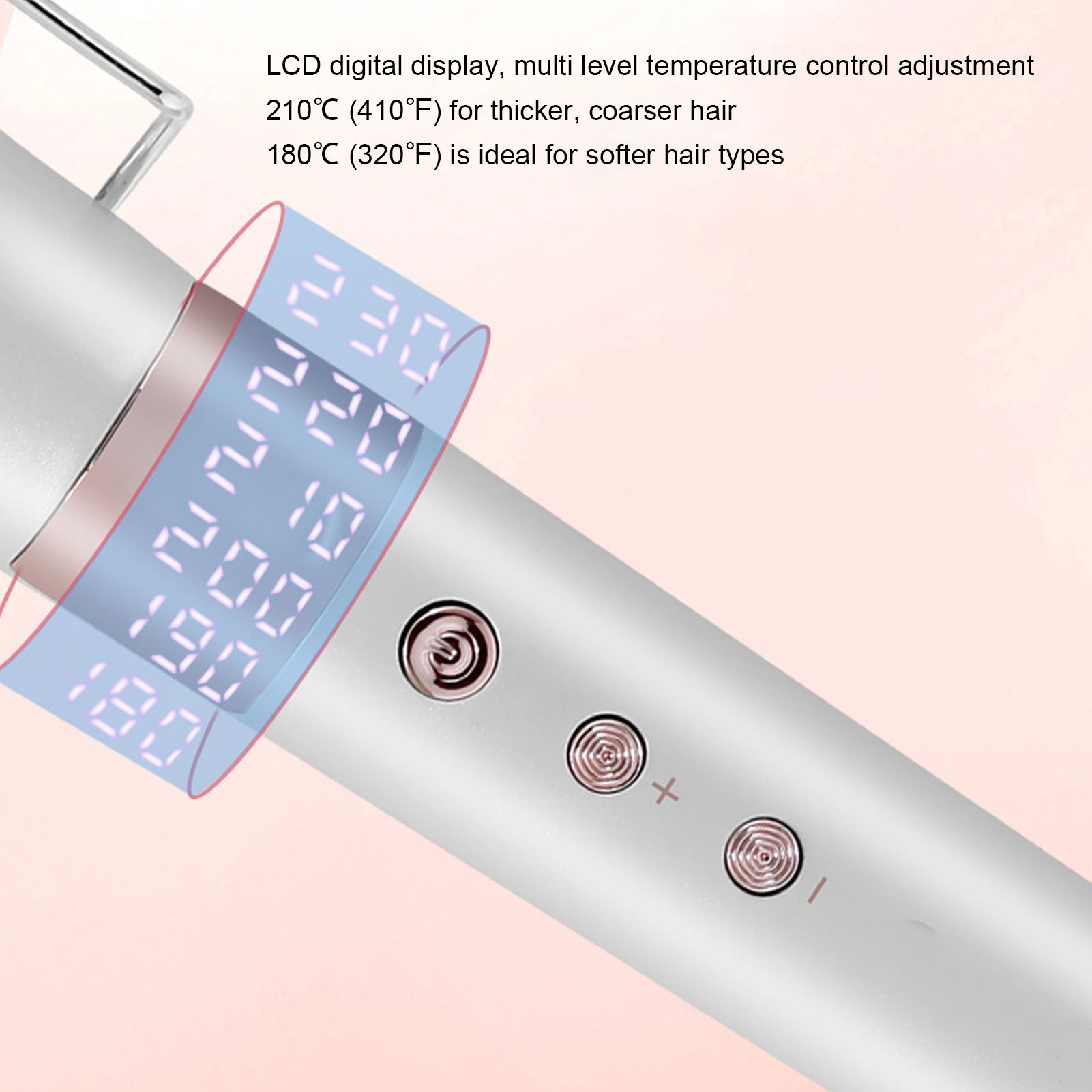 1. Быстрое нагревание: достичь точной стилистической температуры всего за 30 секунд, достигая до 210 ℃ (410 ℉) для более толстых, более толстых волос, в то время как 180 ℃ (320 ℉) идеально подходит для типов мягких волос.