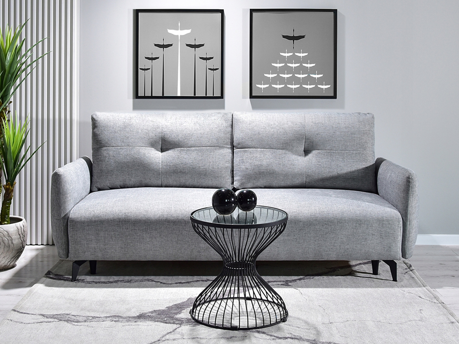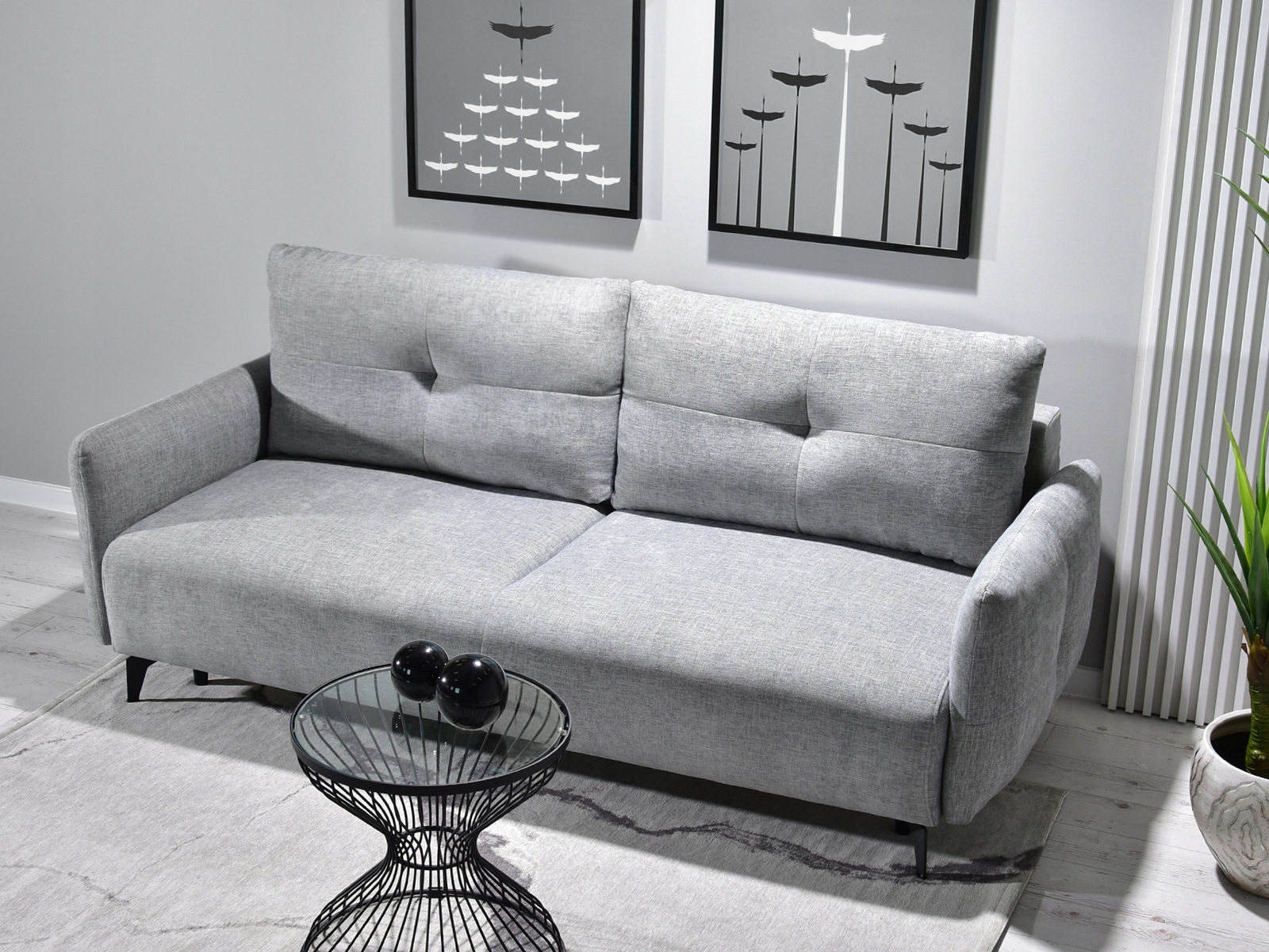 мягкий, широкий и удобный, покрытый стильной тканью в среднем сером оттенке. Благодаря обивке Melange любая грязь гораздо менее заметна и легче поддерживать мебель в чистоте. Диван Лулу был построен на деревянной раме. Интерьер сидений и складной модуль для сна заполнены гофрированной пружиной, которая обеспечивает диван с правильной формой и сбалансированной степенью твердости. Кроме того, в сиденье и основе есть высокоэластичная мебельская пена, которая гарантирует мягкость, удобство и адекватную реакционную способность материала под влиянием давления от человеческого тела