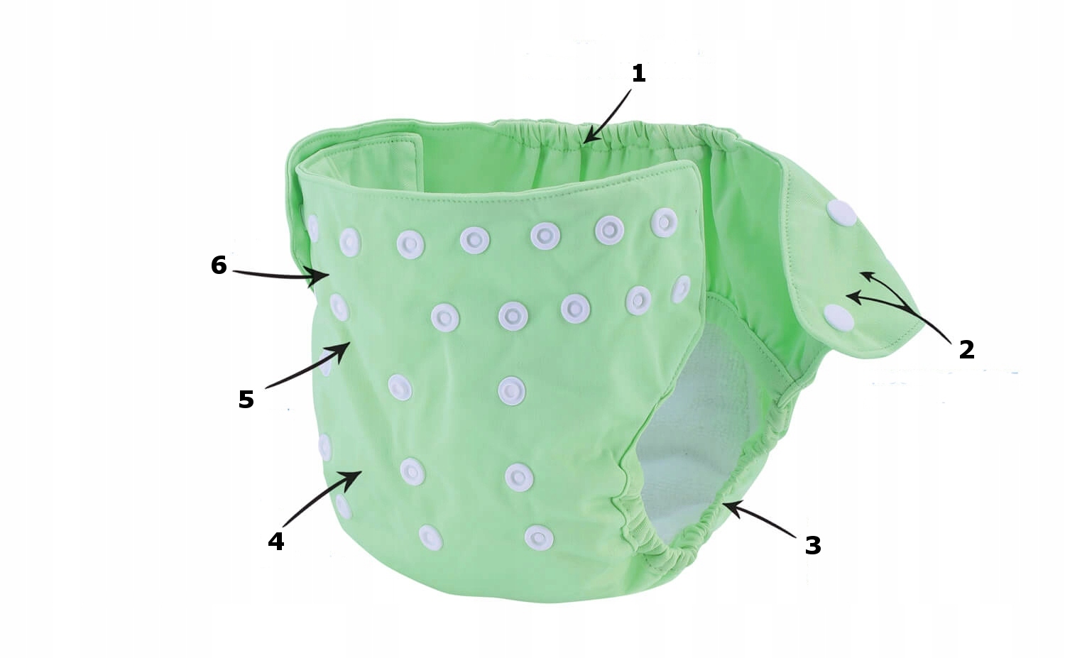 Внешний слой подгузника изготовлен из бесспорной влаги современного слоя бассейна. Стоит иметь больше картриджей, потому что подгузник быстро высыхает и может использоваться снова. (Вставки доступны на отдельных аукционах)