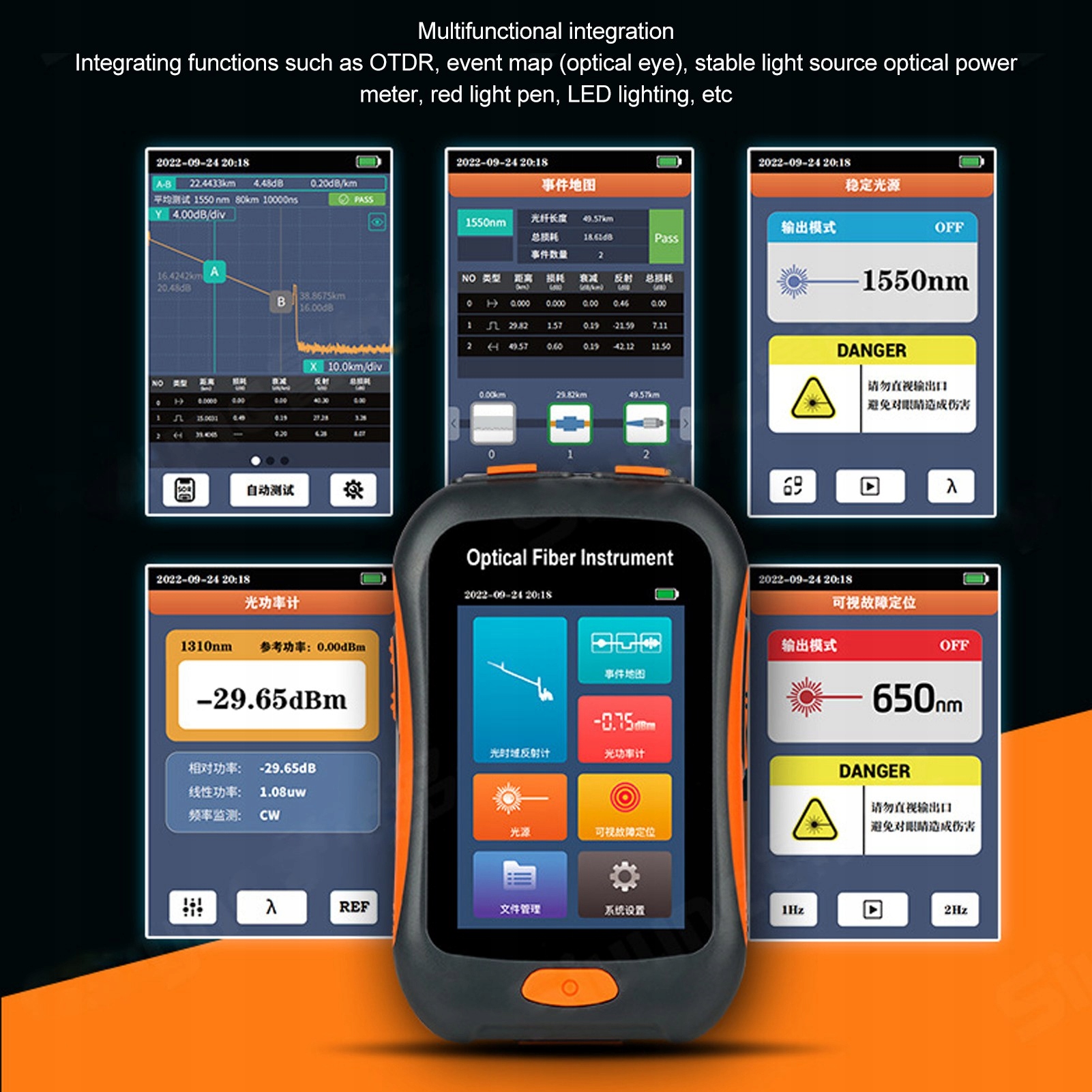 5. Комплексные возможности тестирования: это устройство особенно подходит для оценки FTTX и доступа к построению и обслуживанию сети. Он может определять точки обрыва волокна, измерять длину оптического кабеля и рассчитывать относительную потерю оптической мощности, что делает его незаменимым инструментом тестирования сети.
