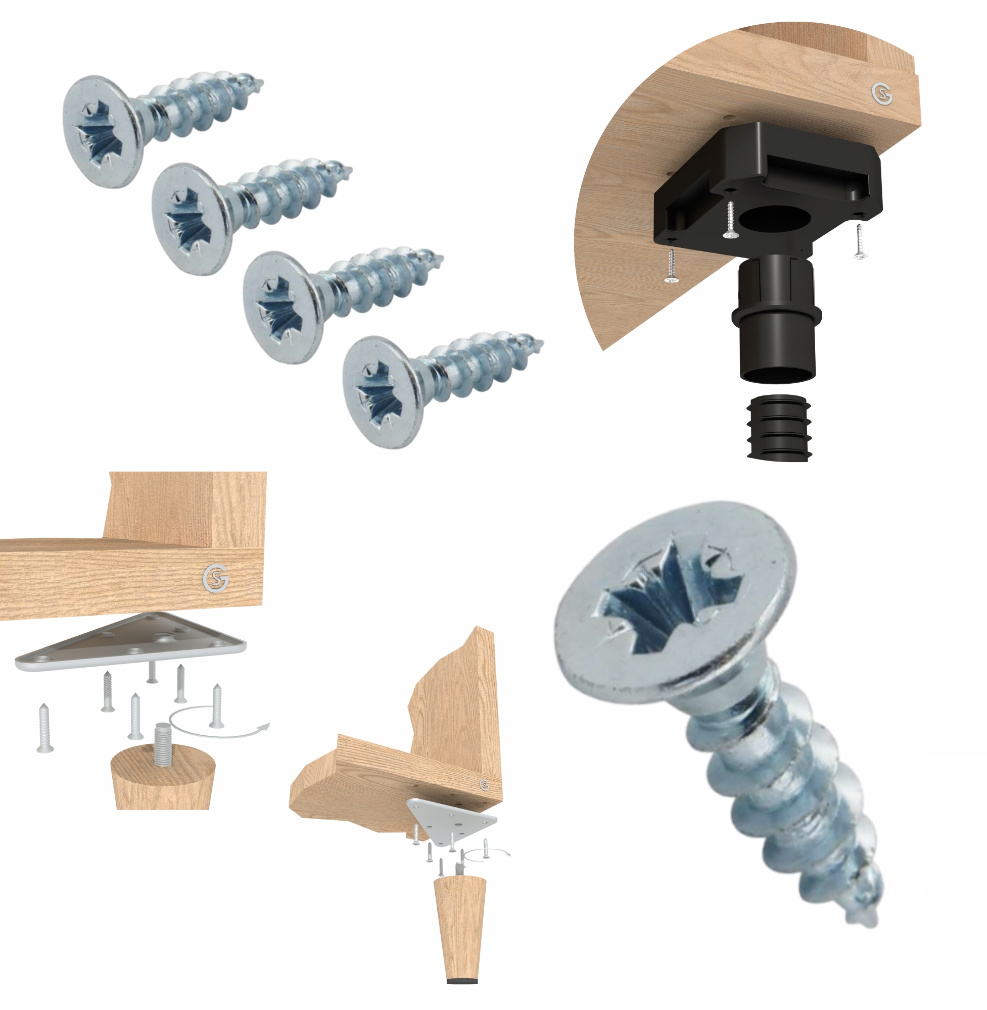Сурьмы для дерева с конической головкой и белой оцинковкой. Шуруп закаленный/отпущенный, предназначен для соединения мебели и обивки, а также со стальными уголками, фурнитурой для кроватей, опорами для полок – имеются в нашем предложении. Конический винт имеет паз для крестовой отвертки.