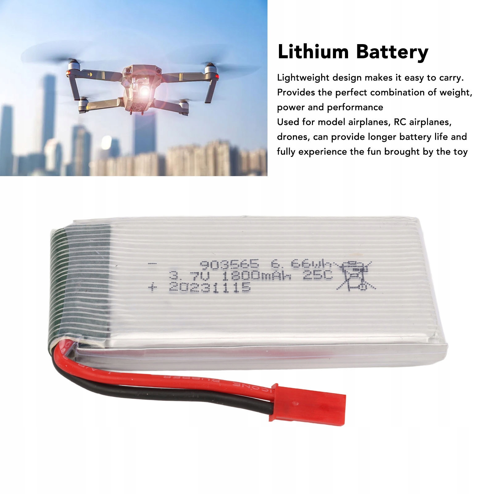 Литиевая батарея 3,7 В, 1800 мАч, портативная безопасная литиевая батарея для модели самолета с красной вилкой JST для радиоуправляемого дрона-самолета
