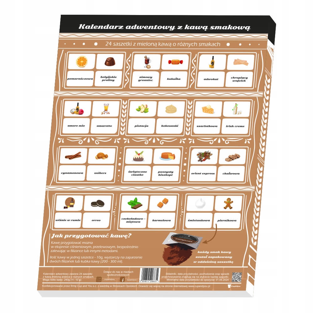- Количество кофе в одном окне календаря - 10 г - достаточно, чтобы заварить чашку или кружку кофе.