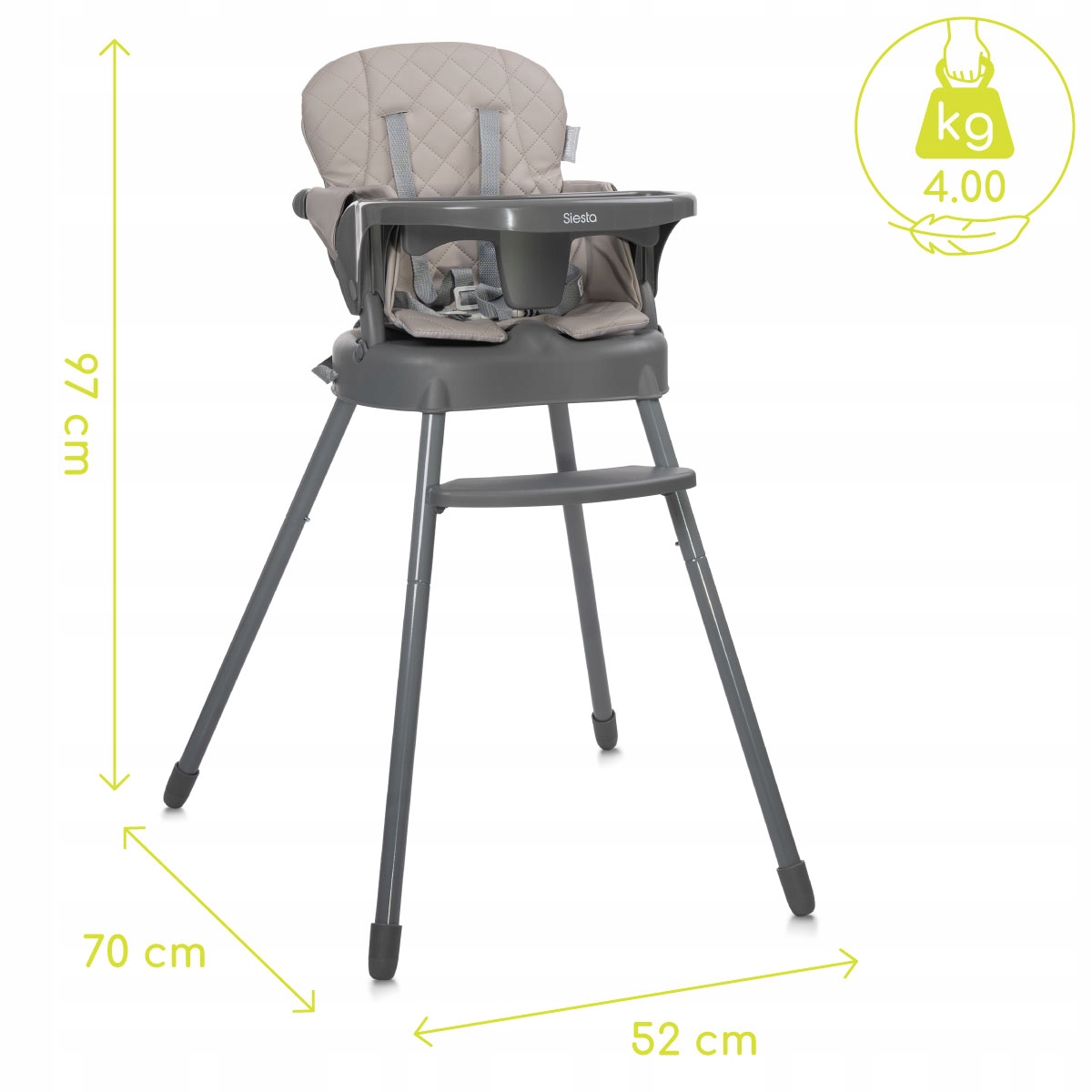 Добро пожаловать в мир элегантного стула для кормления Siesta 3in1 - место, где каждая еда становится настоящим удовольствием. Мягкие материалы и регулируемый дизайн адаптируются к растущим потребностям вашего ребенка, а стабильная конструкция всегда обеспечивает безопасность. Siesta 3in1 - идеальное решение для многих лет - от первого приема пищи до независимого веселья.