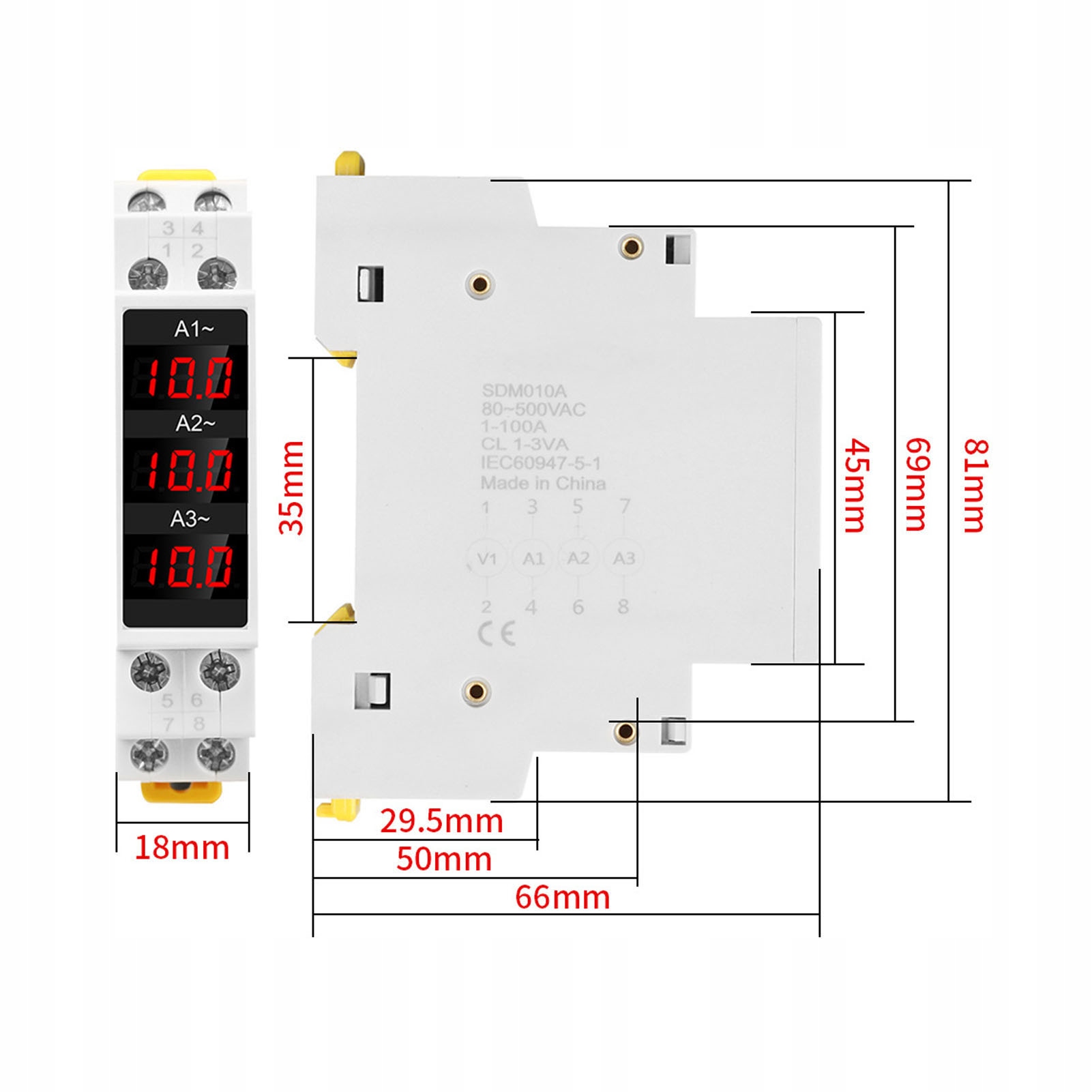 - Тип изделия: 3-фазный амперметр на DIN-рейку.