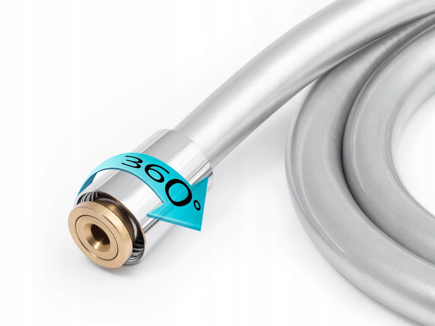 Прочный резиновый шланг из ПВХ, длиной 150 см, серебристого цвета. Он идеально подходит к хромированным смесителям и наушникам, а его гладкая поверхность облегчает очистку. Резьба на обоих концах стандартного размера 1/2 дюйма. Кроме того, эта модель имеет один поворотный кончик, который предотвращает ее перекручивание и запутывание.