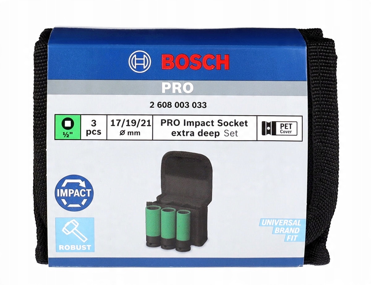 3 ГОЛОВКИ УДАРНІ 17-21 мм 1/2" PRO КОМПЛЕКТ ГОЛОВОК EXTRA DEEP BOSCH
