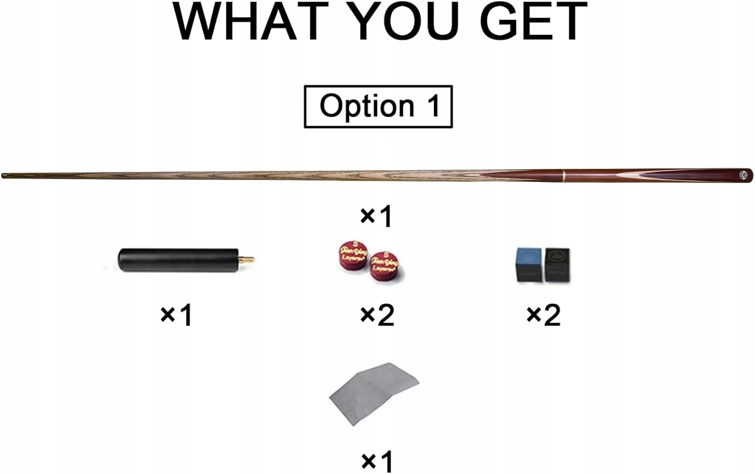 - Набор включает в себя: три палочки, крышка, перчатка, ткань, наждачная бумага, кольцо с ключом, резиновое покрытие для более широкого кончика палки, 2 -х -заводы -проводные кончики, 2 -кратный куб, бильярд -перчатка.