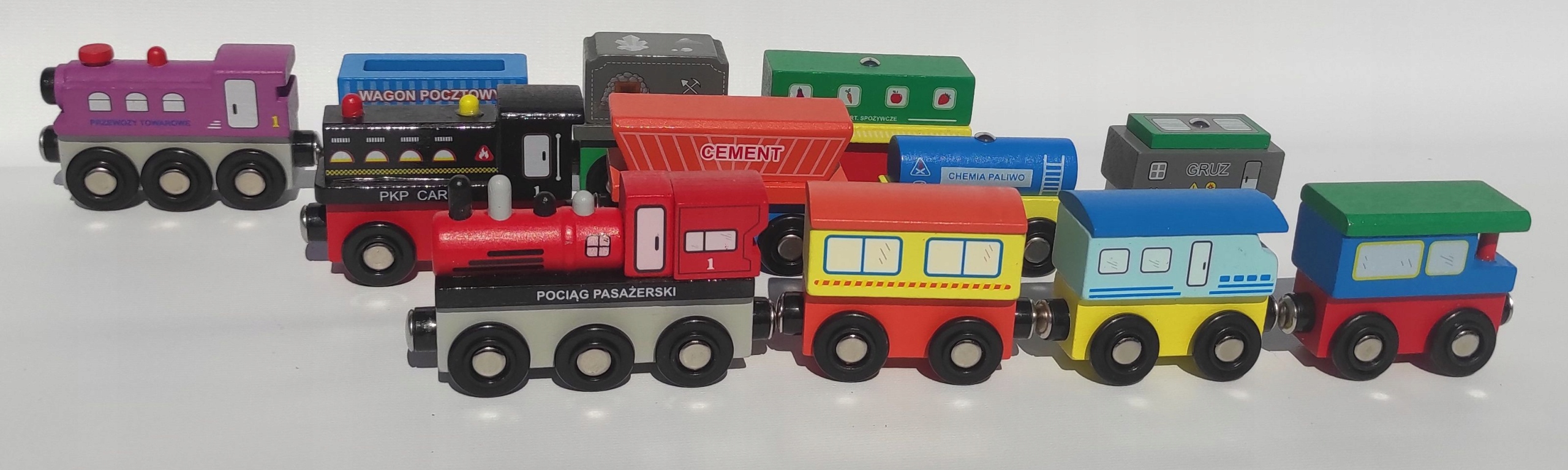 3 деревянных поезда очереди ПОЛЬСКИЕ ВАГОНЫ ОПИСАНИЯ