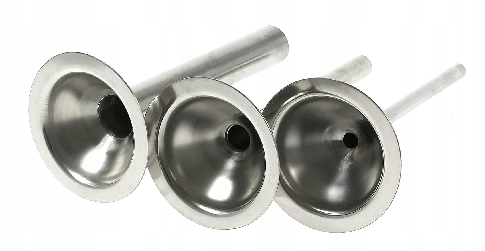 Набор из трех воронок, изготовленных из высокого качества нержавеющей стали , предназначенный для мясных машин с номером 8 . Идеально подходит для домашнего и профессионального продукта колбасы, черного пудинга, пирогов и других мясных продуктов.