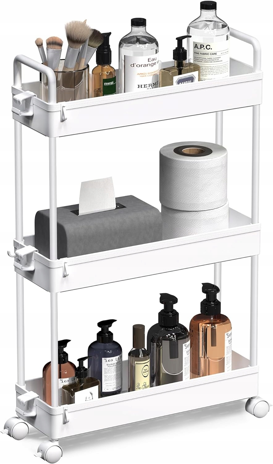 SOLEJAZZ 3-х уровневая тележка с полками на колесах, узкая, переносная, органайзер для кухни, ванной, прачечной, спальни, узких мест, из пластика (белый)