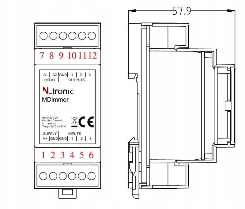 3-канальний драйвер світлодіодного диммера для шини TH-35