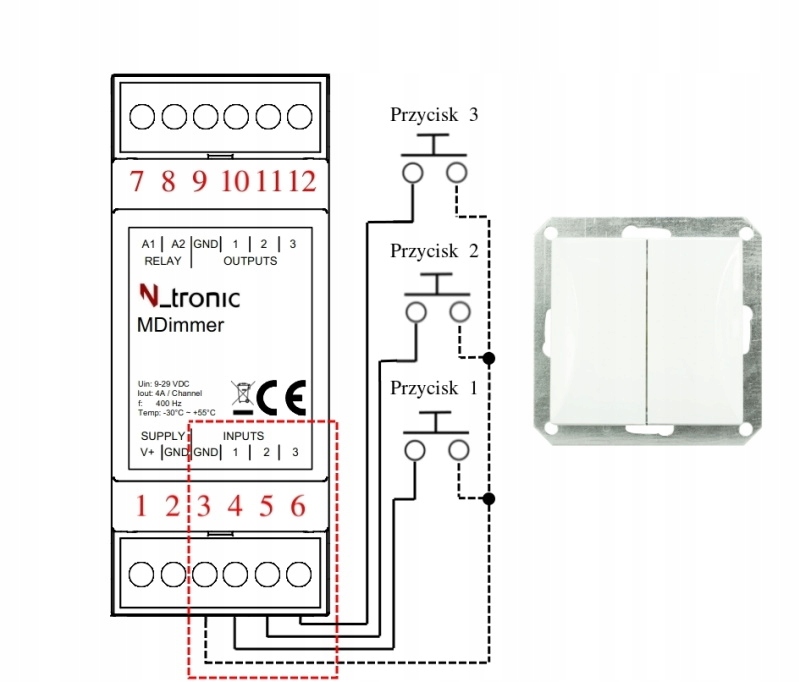 Каждый из выходов можно нагружать током до 4 А. Это позволяет управлять приемниками мощностью до 288 Вт, с Блок питания 24 В.