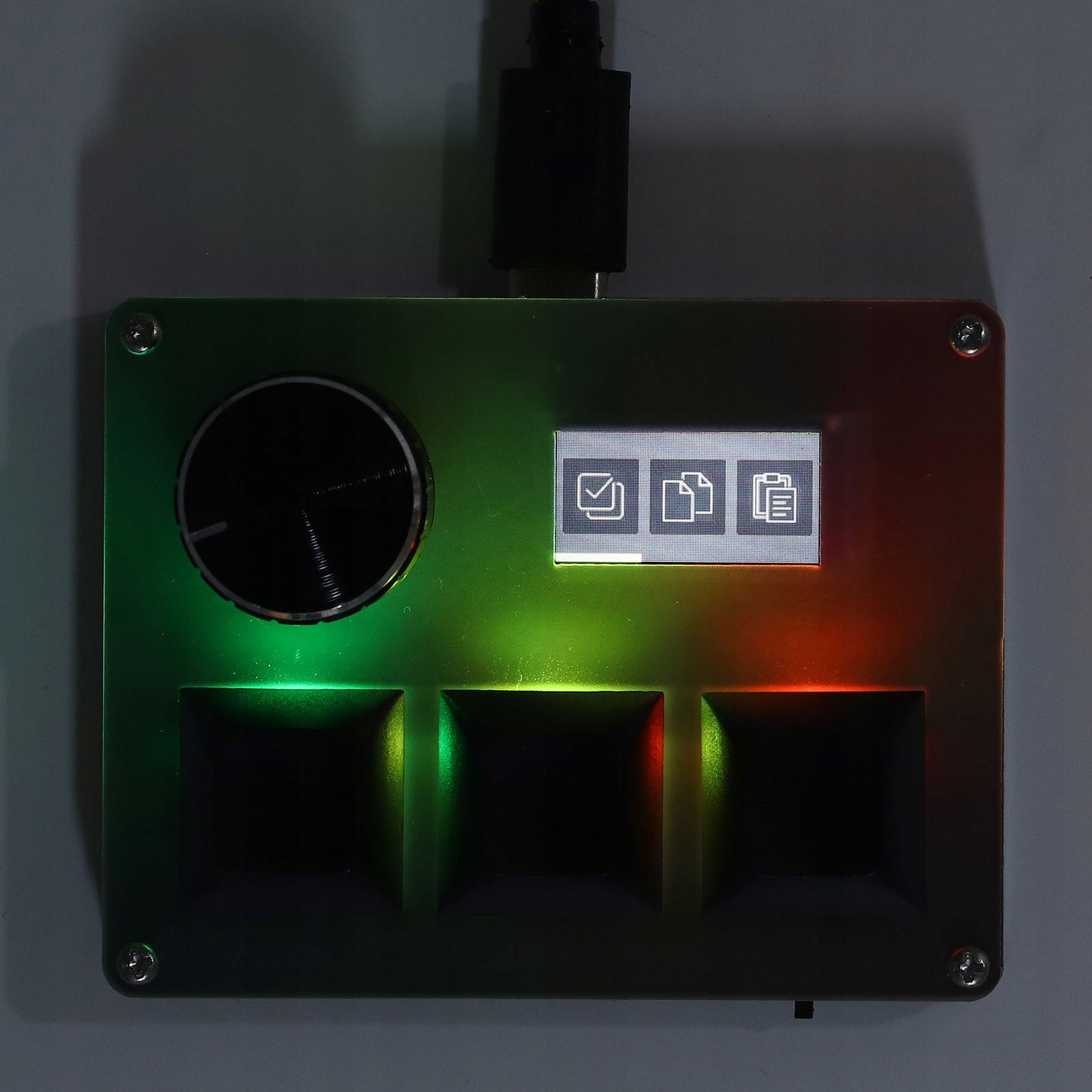 1. 3 клавиши и кодировщик: эта небольшая клавиатура имеет 3 независимых клавиши и поворотный кодировщик, поддерживает редактирование клавиш с помощью программного обеспечения Key Value. Обратите внимание, что он работает только через проводное соединение