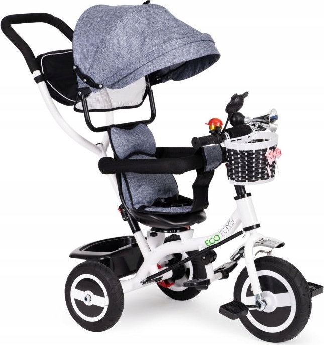ТРЕХКОЛЕСНЫЕ ПРОГУЛКИ, ВРАЩАЮЩИЙСЯ ВЕРХ, ПРОЧНЫЕ РЕЗИНОВЫЕ КОЛЕСА ECOTOYS