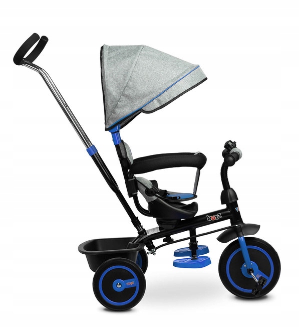 Велосипед BUZZ — одно из многих наших инновационных решений, сочетающих в себе трехколесный велосипед и коляску. Велосипед оснащен ремнями и просторным складным навесом, защищающим малыша от солнца. В корзину сзади можно положить различные мелкие предметы, детские игрушки или сумку для покупок.