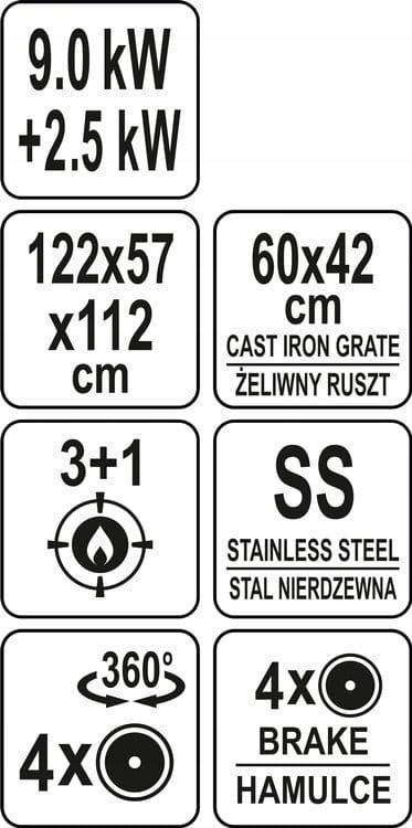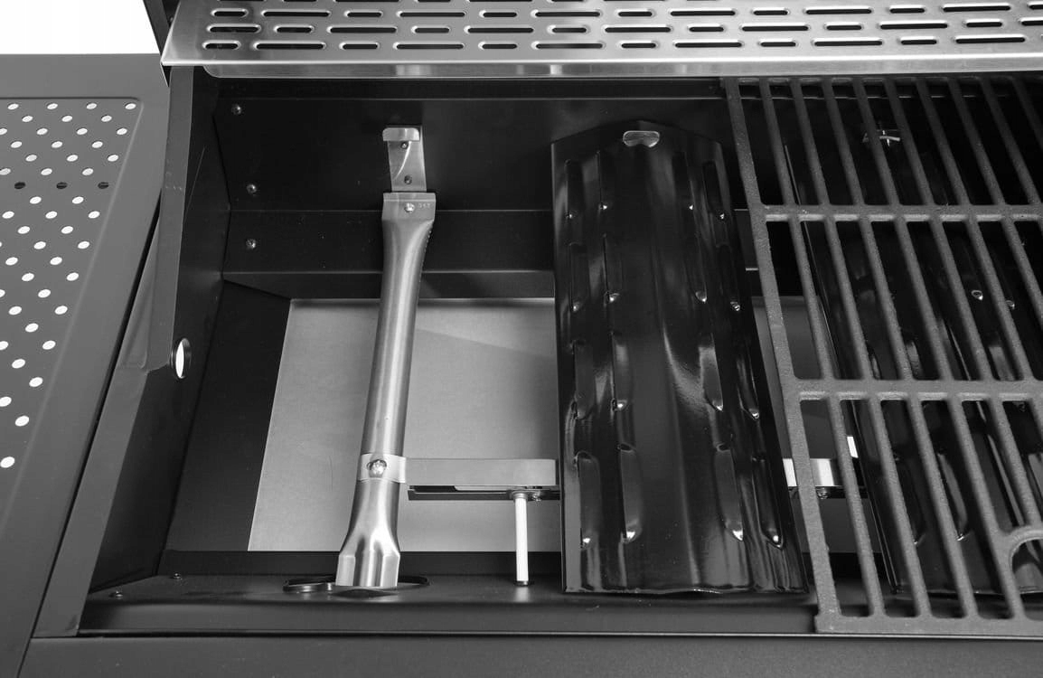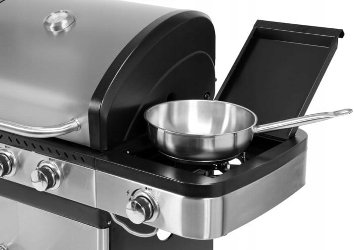 Современный газовый гриль 3+1 из нержавеющей стали,оснащен надежной чугунной решеткой. Боковые полки и вместительный запирающийся шкаф облегчают хранение специй и необходимых аксессуаров. Боковая конфорка мощностью 2,5 кВт позволит готовить и разогревать пищу в кастрюле или сковороде.