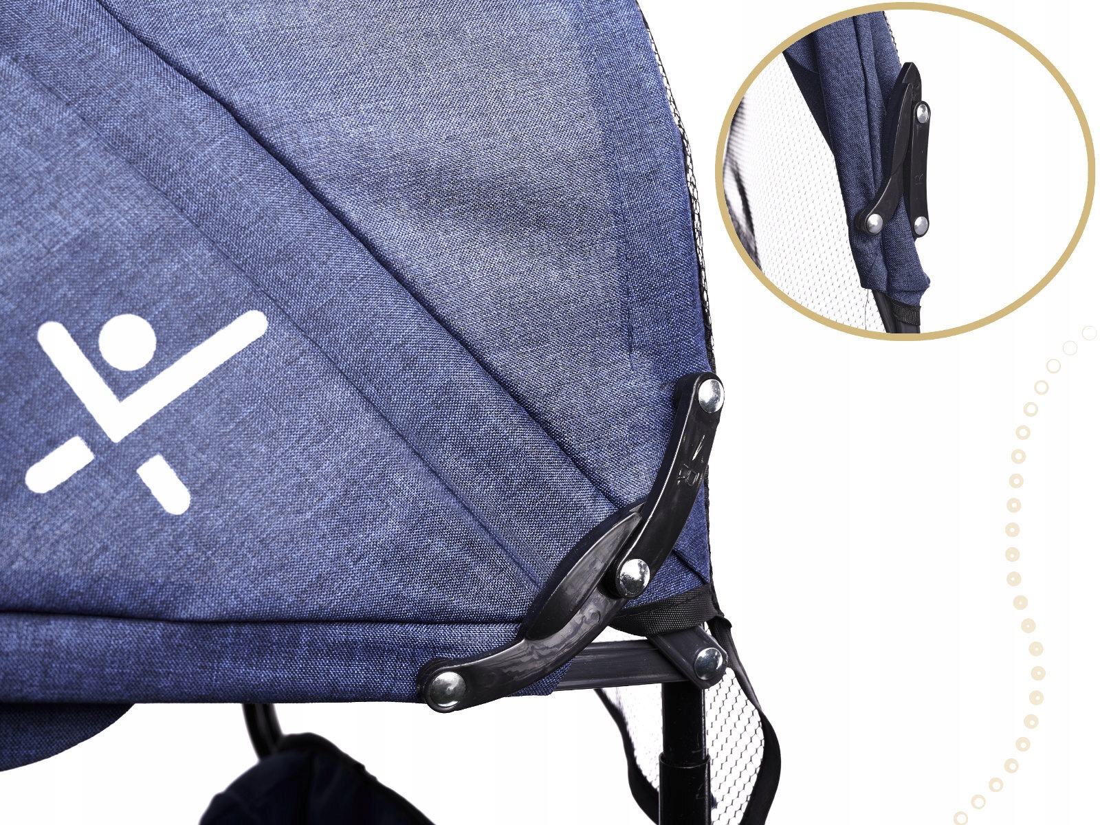 В передней и задней части автомобиля вы можете найти пластиковые корзины, в которых малыш может спрятать игрушку или напиток. На направляющей имеется карман на молнии, в котором можно хранить, например, ключи. Складной трехступенчатый навес с сеткой защитит вашего ребенка от дождя или солнца. Его можно разобрать или сложить и закрепить. Направляющая ручка и поручни безопасности покрыты пенопластом.