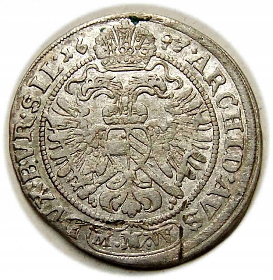 3 Krajcary 1697 Леопольд и Габсбург Вроцлав