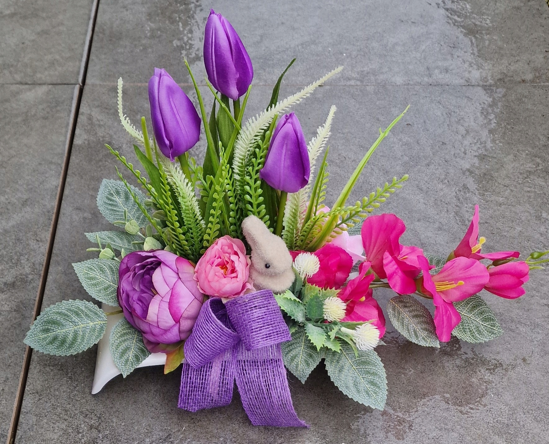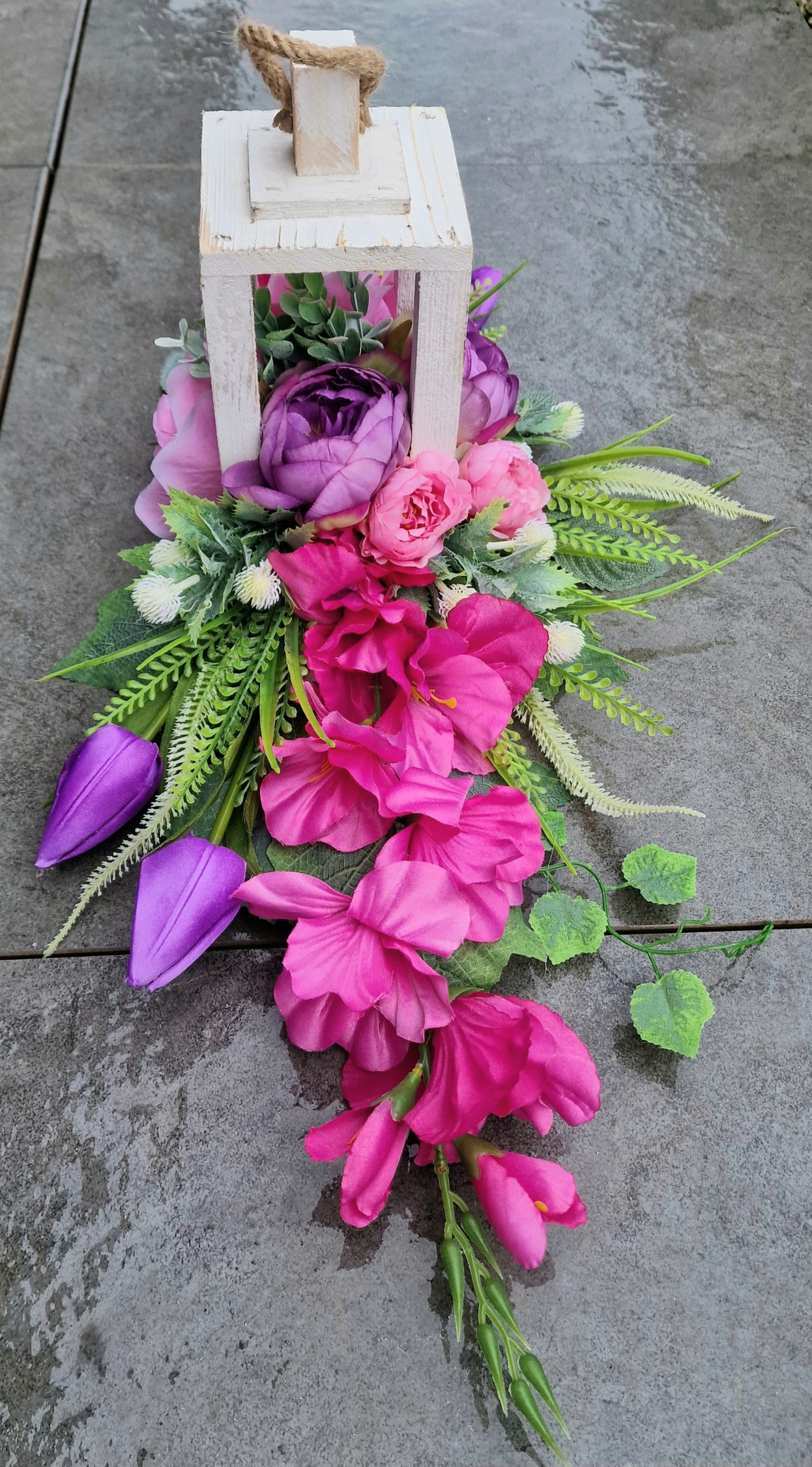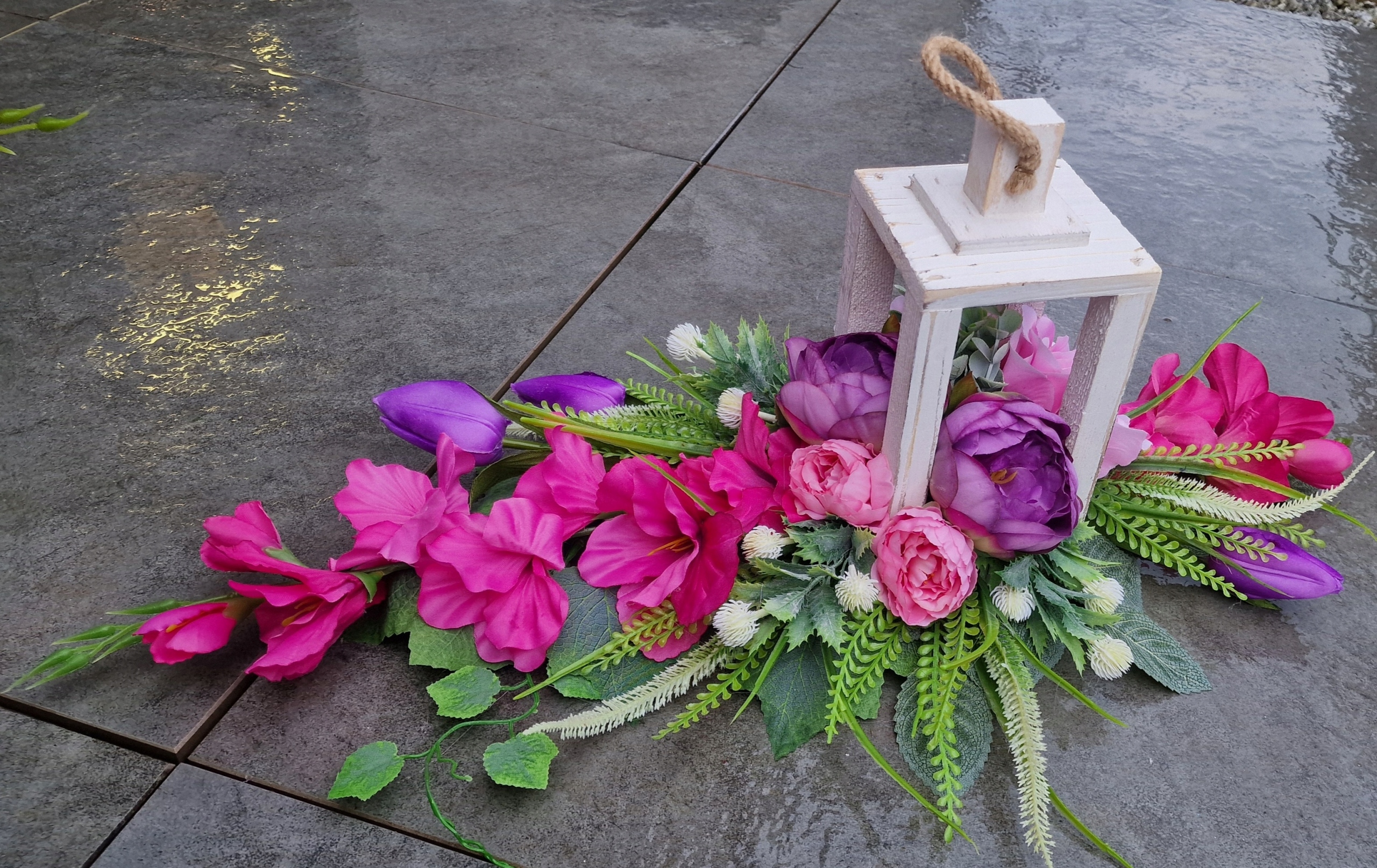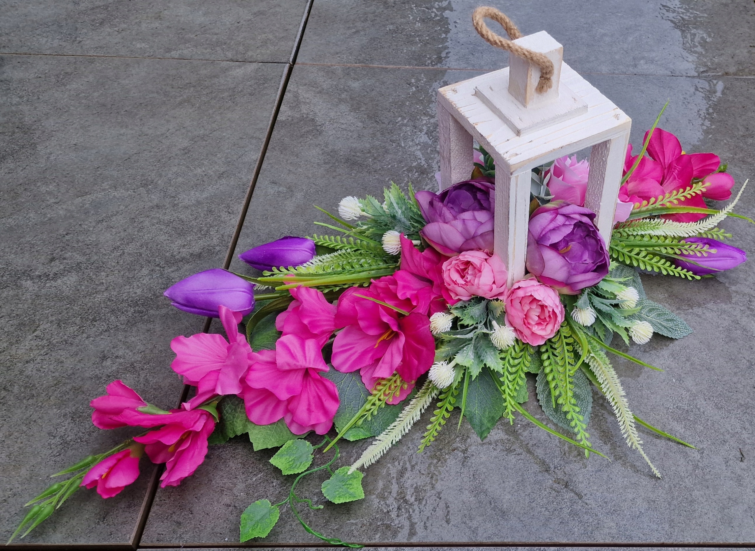 3 квіткові композиції на могилу, кладовище, оформлення + ліхтар + вставка вази