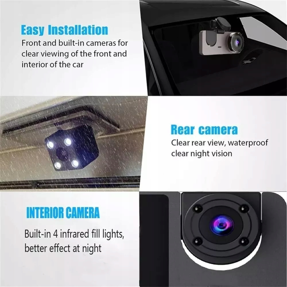 3-лінзова відеореєстратор водіння автомобіля Передня/внутрішня/задня камера реєстратора, Czarny