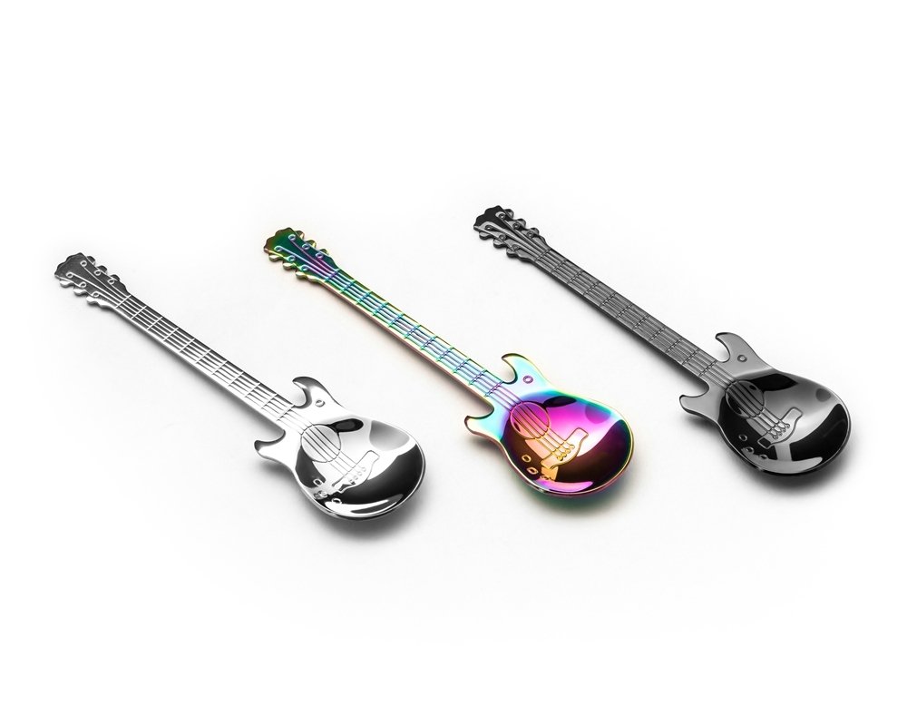 Музыкальные ложки в форме гитары в трех цветах на любой вкус любителей музыки. Это ложки для всех тех, кто хочет, чтобы каждый день проходил гладко и все шло гладко, когда они помешивают или подслащивают утренний кофе или чай нашей музыкальной ложкой ;)