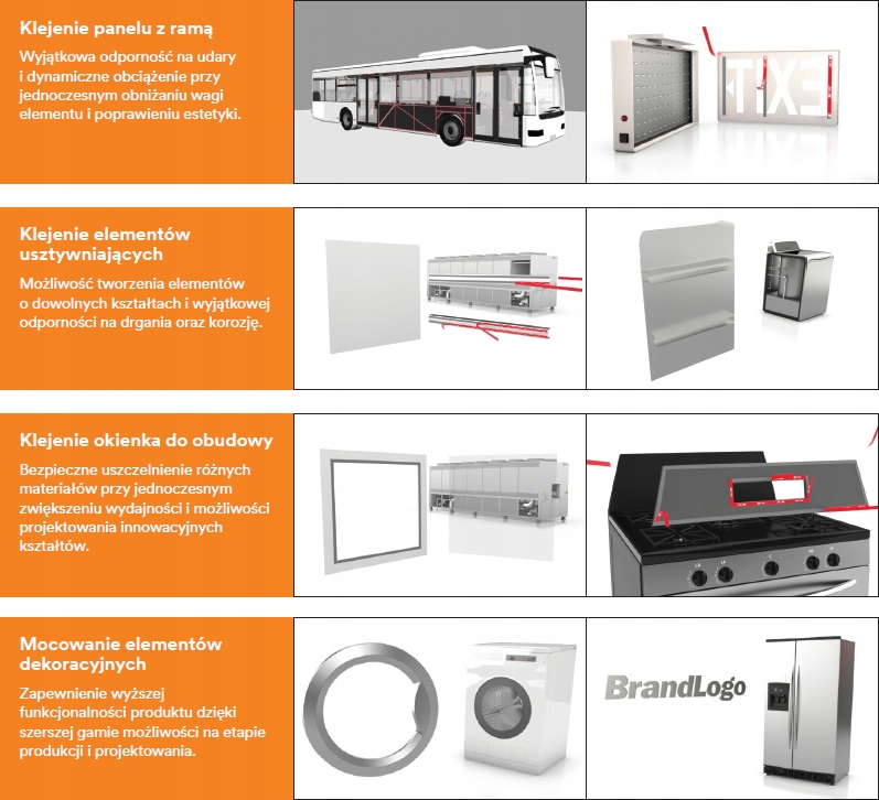 Лента является идеальным выбором для различных применений практически во всех отраслях. Он характеризуется непревзойденной прочностью, которая обеспечивает общую долговечность и надежность каждого сварного шва. Использование лент 3M™ VHB™ позволяет улучшить эстетику суставов. Уникальные свойства акриловых конструкций означают, что соединения остаются долговечными и крепкими, несмотря на время. Многие продукты в различных отраслях промышленности обязаны своими свойствами использованию клейких лент 3M™ VHB™ на всех этапах производства, сборки и окончательной герметизации.