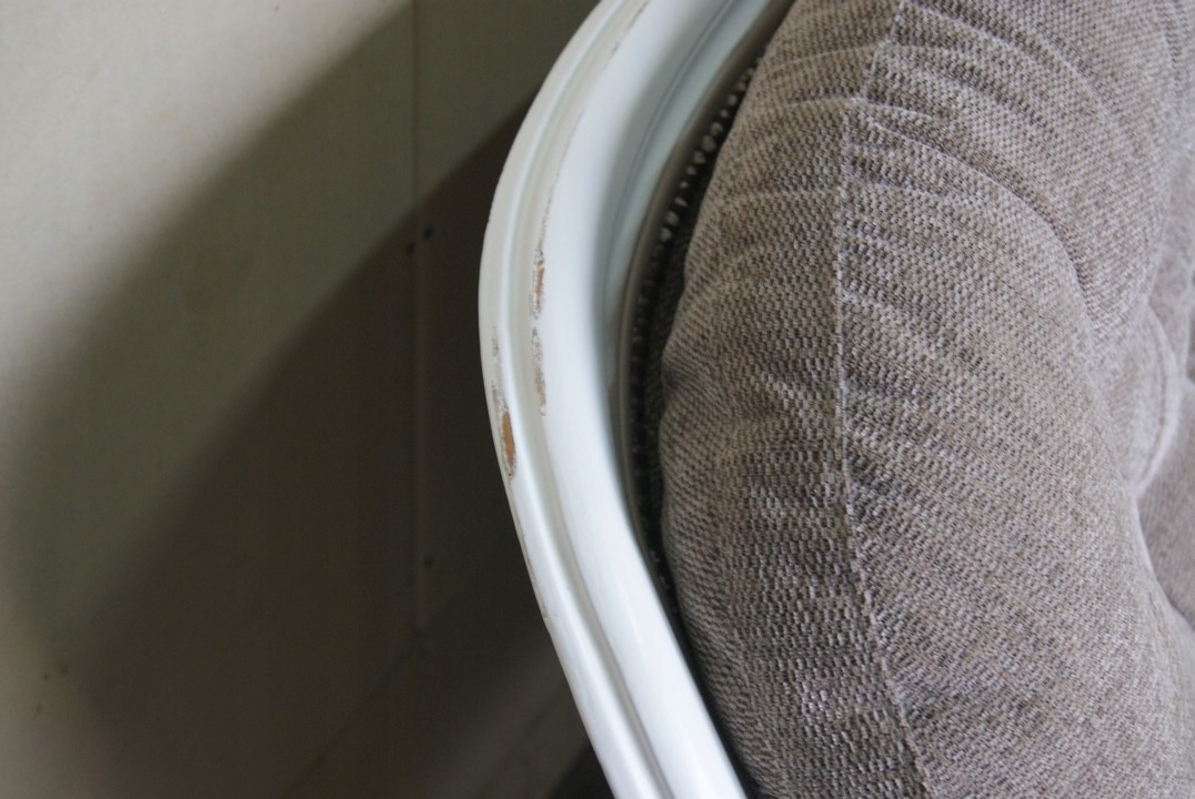 Состояние дивана видно на фотографиях, конструкция устойчивая, дерево окрашено в белый цвет и не очень точно.