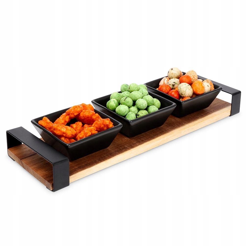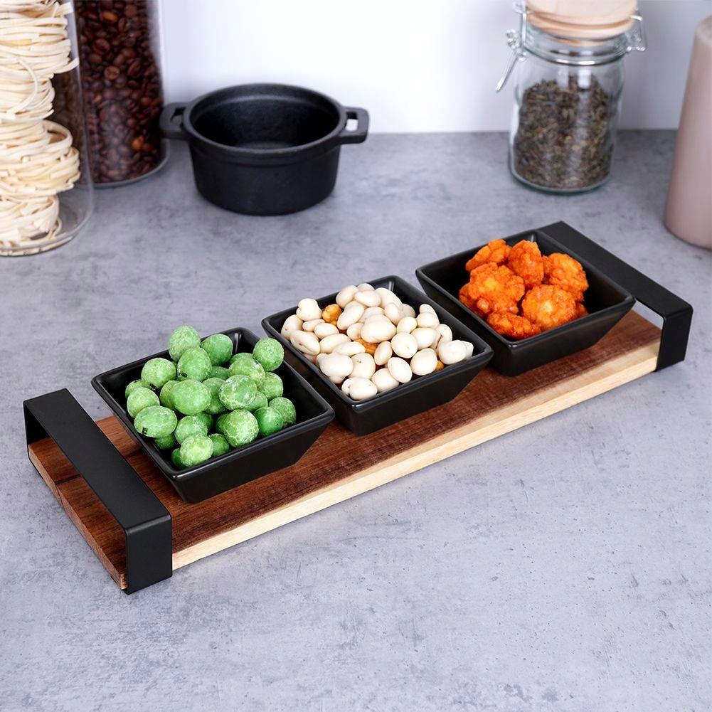 3 черные керамические миски для окунания закусок на деревянный поднос
