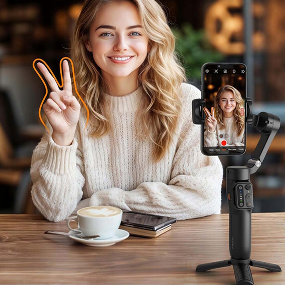 Этот компактный стабилизатор весом всего 361 г аккуратно складывается и легко помещается в карман, что делает его идеальным для искателей приключений, которым нужно портативное решение для съемки моментов в дороге.