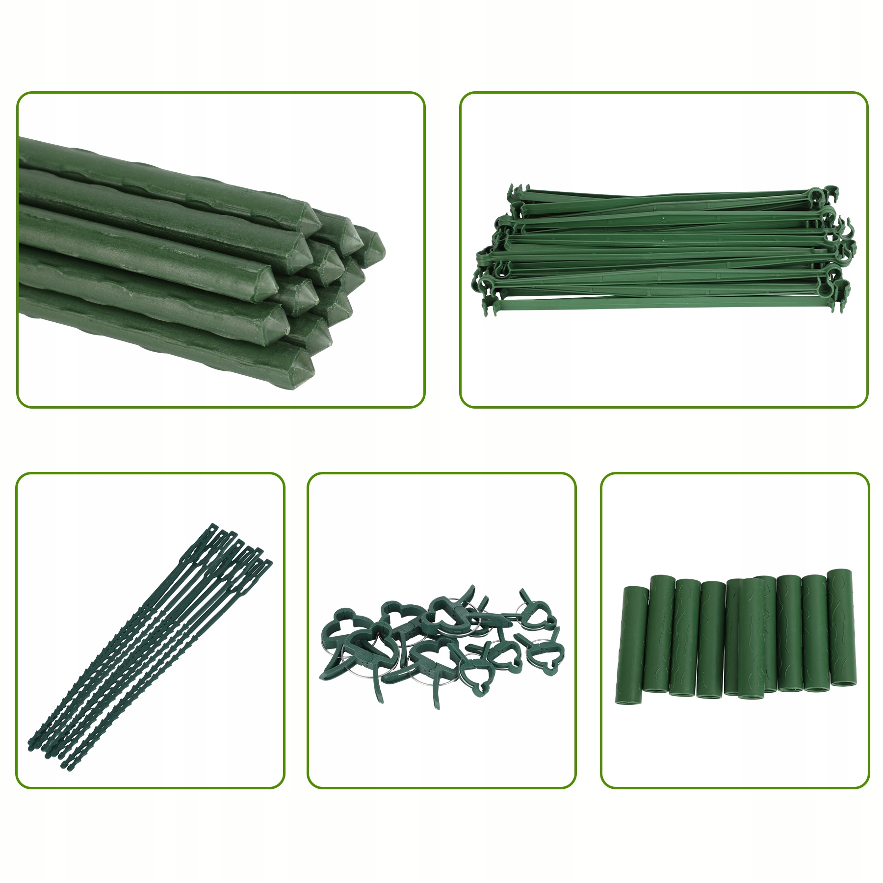 Поддержание помидоров сделано из прочного стального ядра и покрыто прочным зеленым пластиковым покрытием для защиты от погодных условий и ржавчины, что не влияет на эстетику и никогда не может использоваться в течение долгого времени и никогда не ржаветь. Несоотражная полосатая конструкция также обеспечивает сильную и стабильную захват фруктов и овощей
